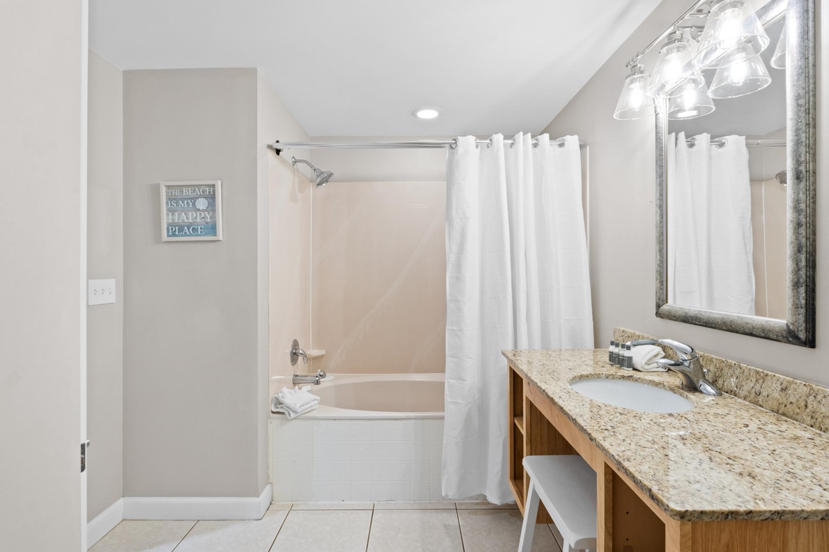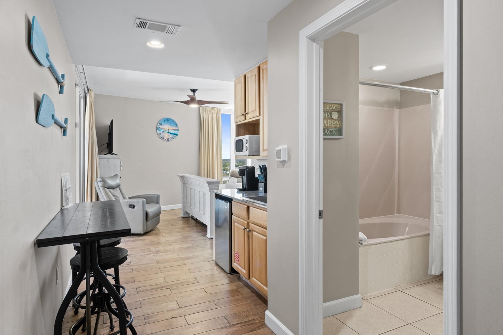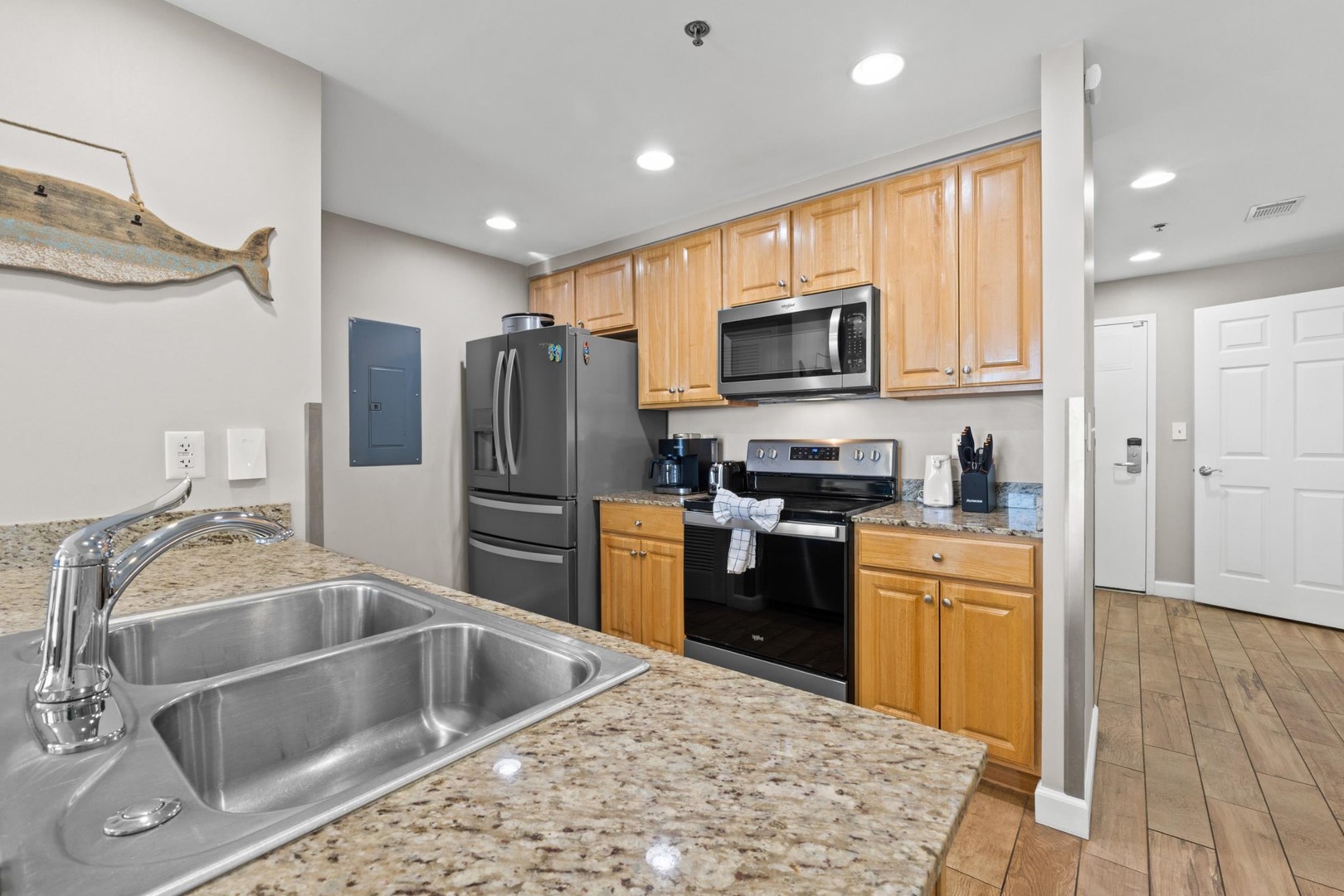 Perfect for larger families or couples traveling together, the condo features a full kitchen and two private suites and a guest bedroom. One of the suites is an efficiency lockout unit, complete with a mini-fridge, sink, microwave, and coffee maker for added convenience.