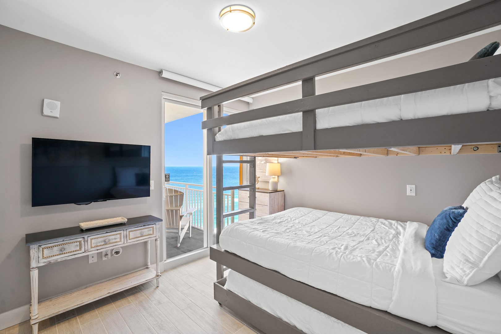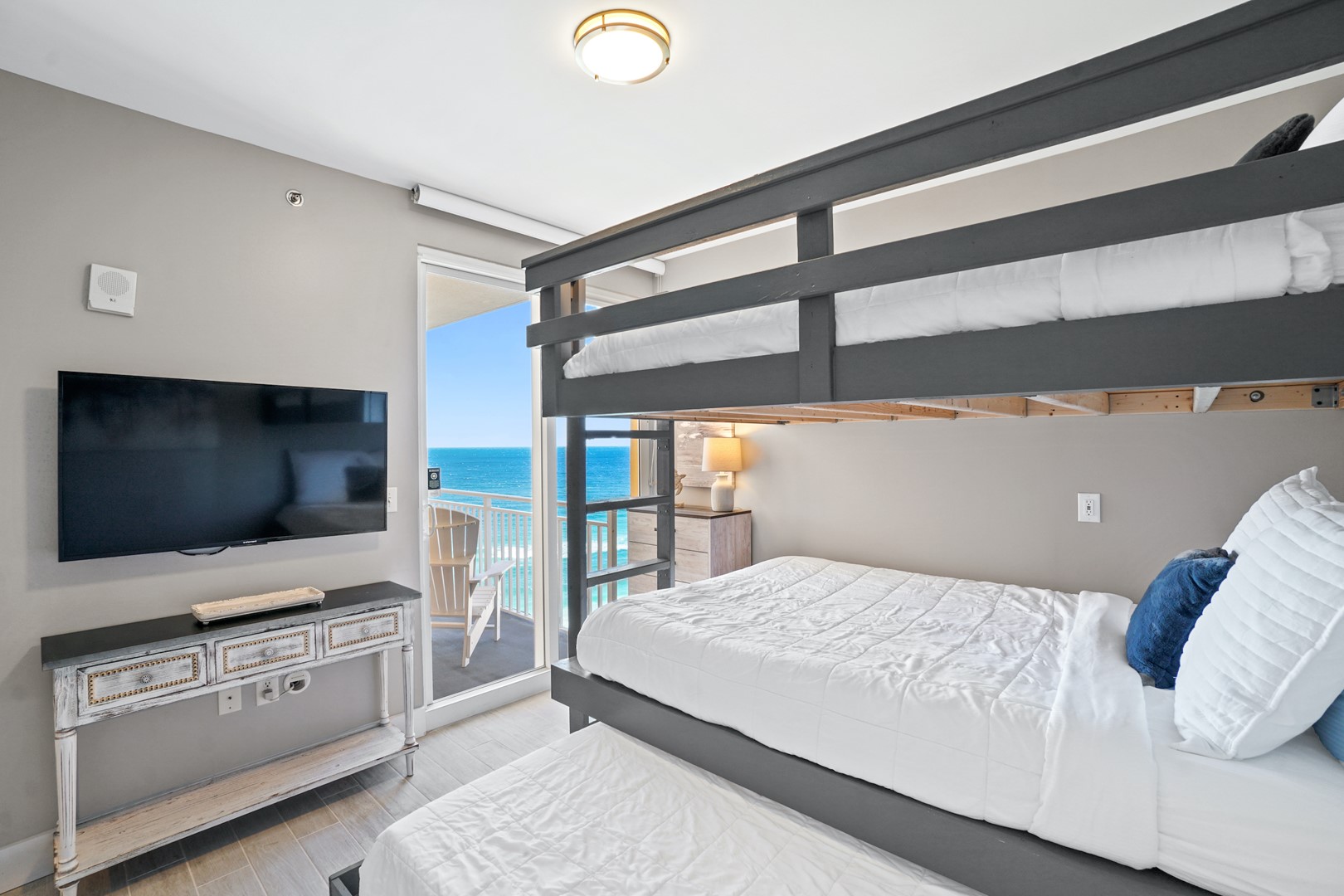 * Bedroom 2 - Bunk (Queen/Queen/Tw Trundle) - Gulf View, Private Balcony & 50" Smart TV