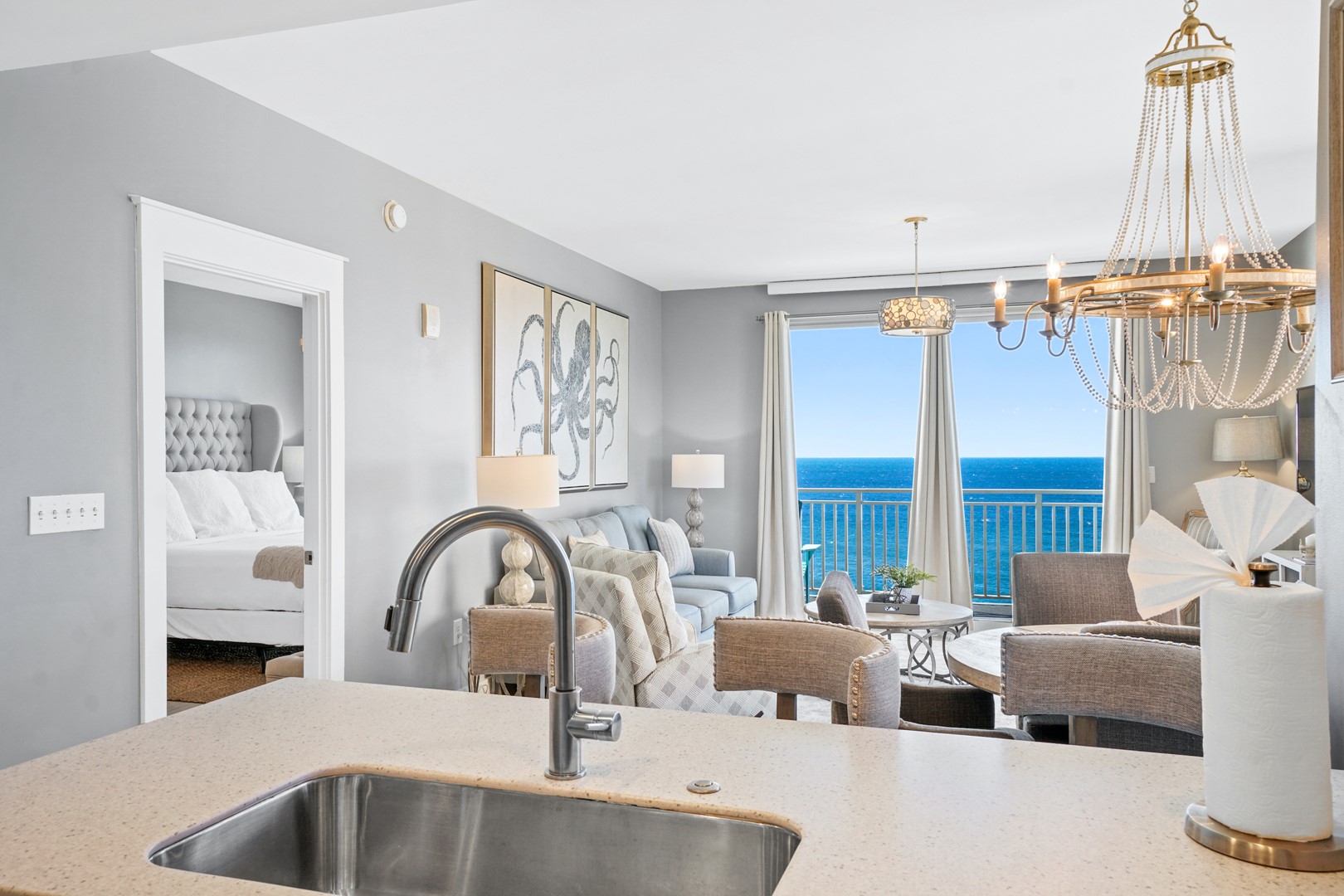 * Living Area w/Gulf Views, Queen Sleeper Sofa & 55" Smart TV