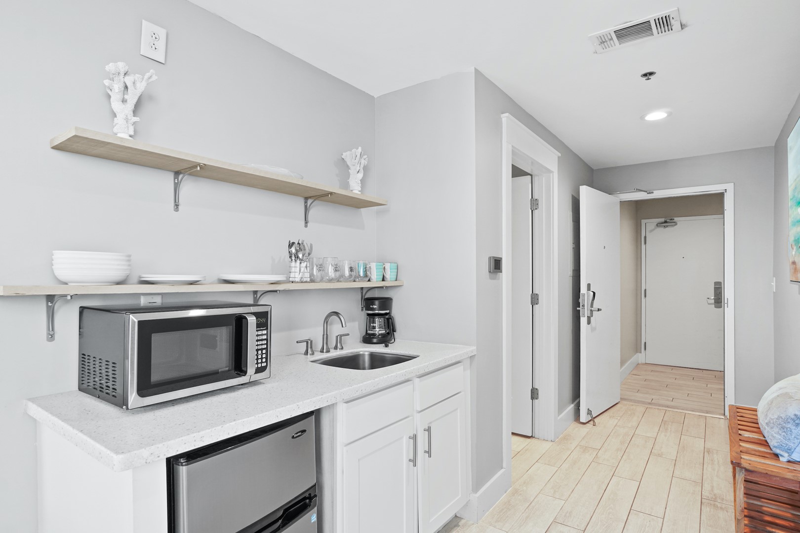 - Kitchenette - Coffee Maker, Sink, Small Fridge