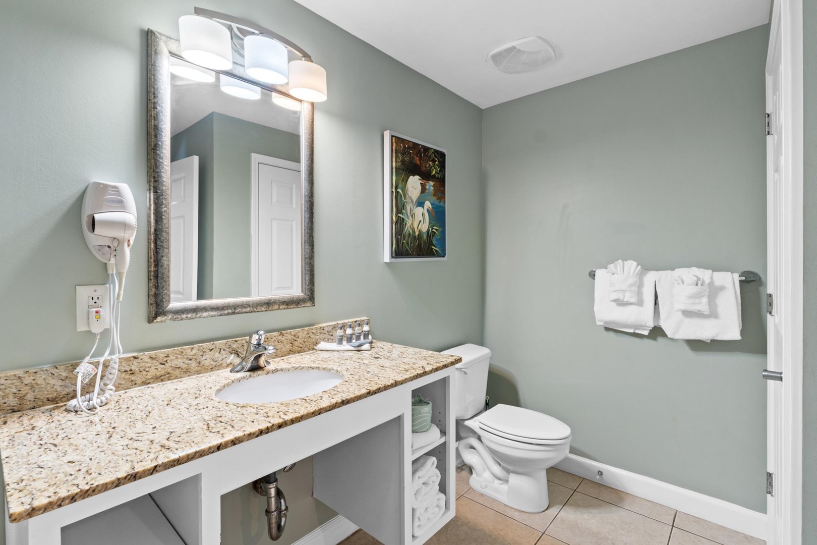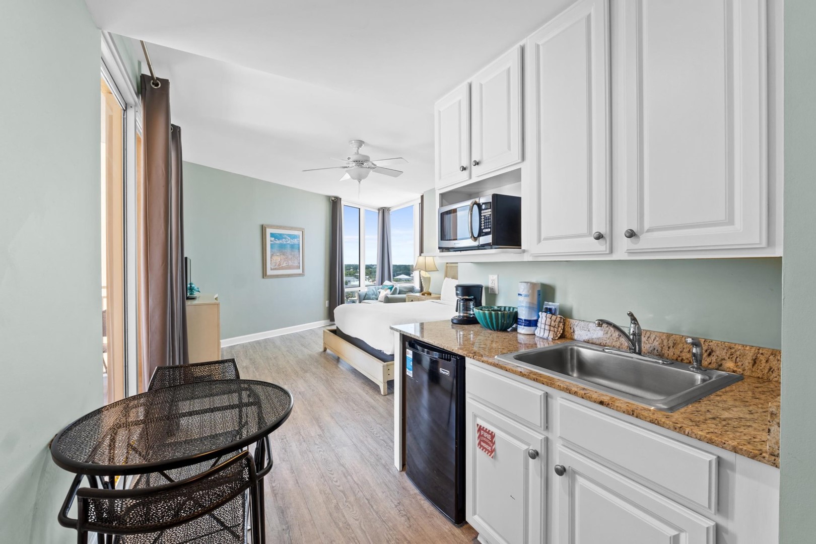 Perfect for larger families or couples traveling together, the condo features a full kitchen and two private suites and a guest bedroom. One of the suites is an efficiency lockout unit, complete with a mini-fridge, sink, microwave, and coffee maker for added convenience.