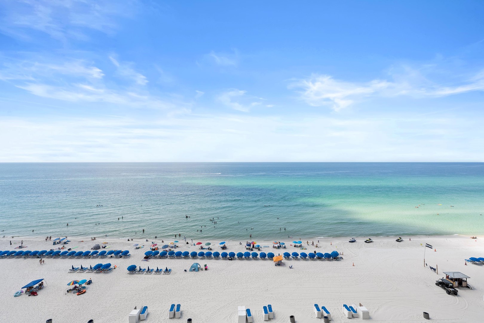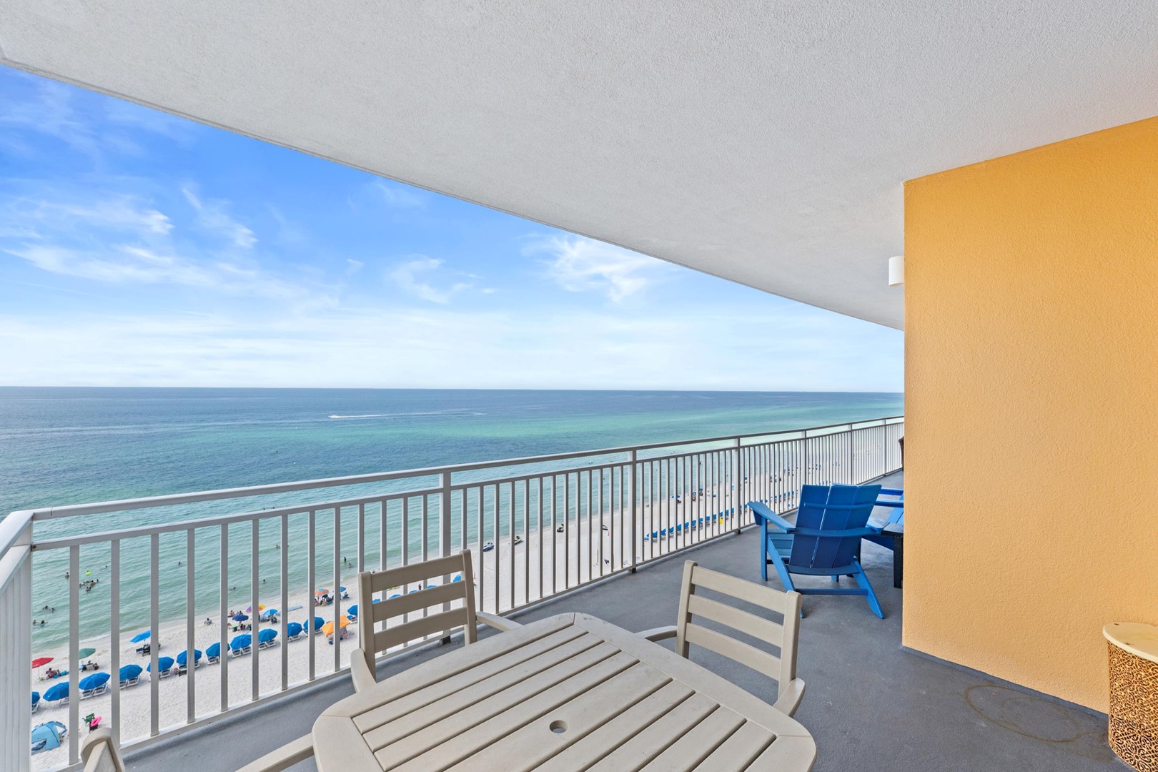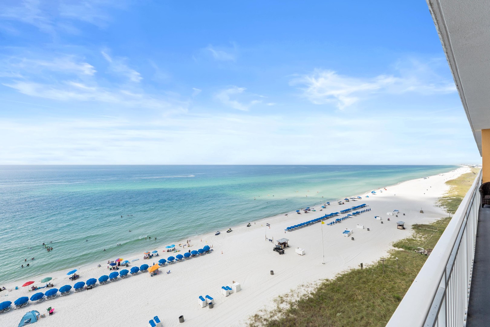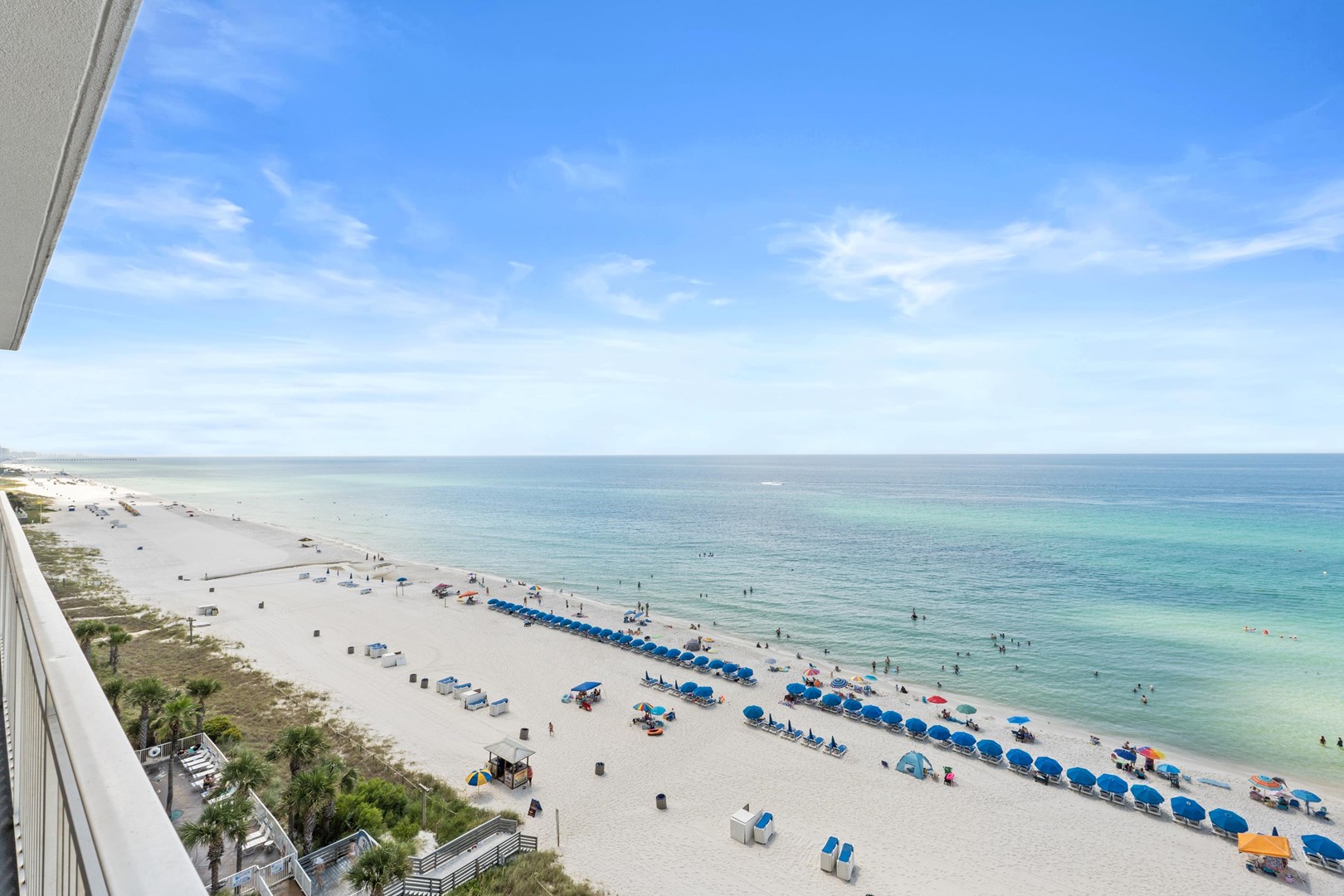 Splash Beach Resort rental 607W in Panama City Beach, Florida by Panhandle Getaways is a direct beachfront 2 bedroom plus bunk area, 2 bathroom vacation home complete with all of the conveniences of home. Guests will enjoy 2 gulf front primary bedrooms and incredible views from the direct beachfront extended corner balcony.