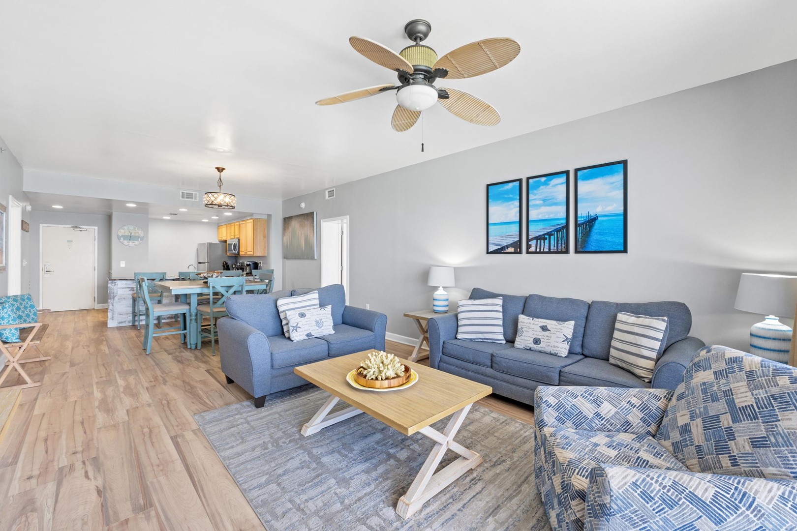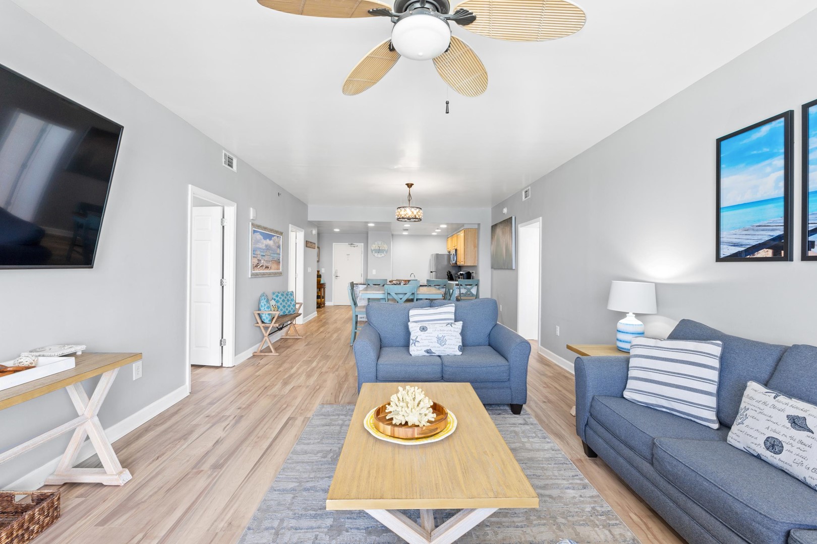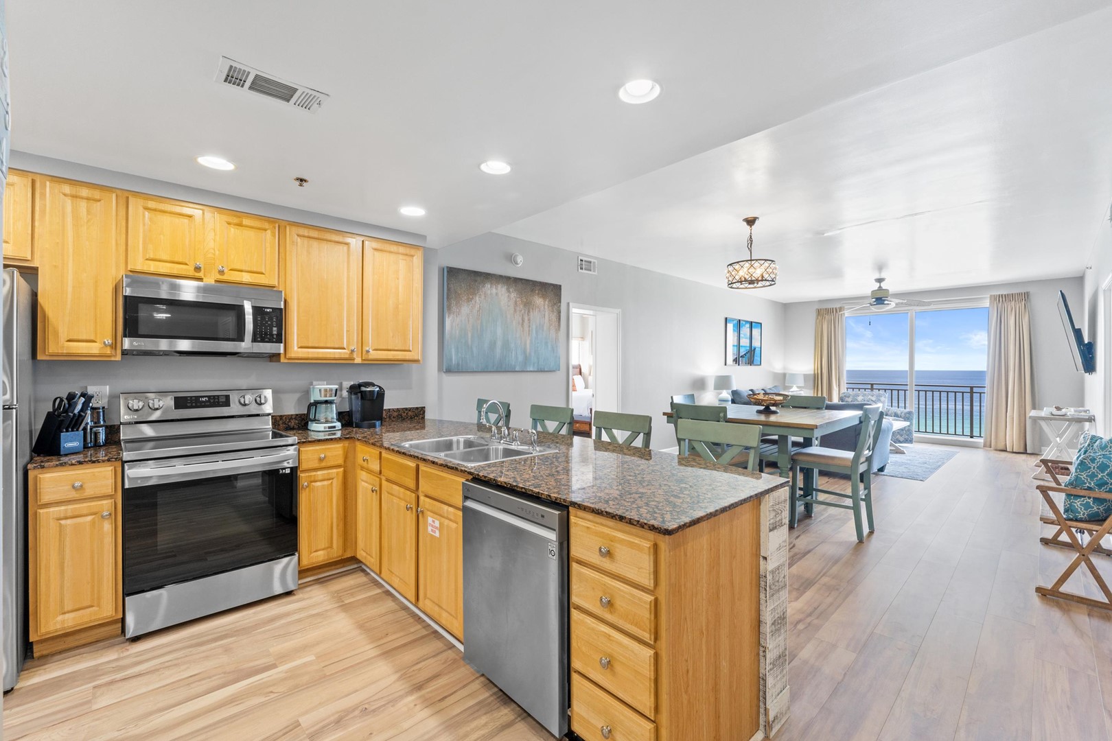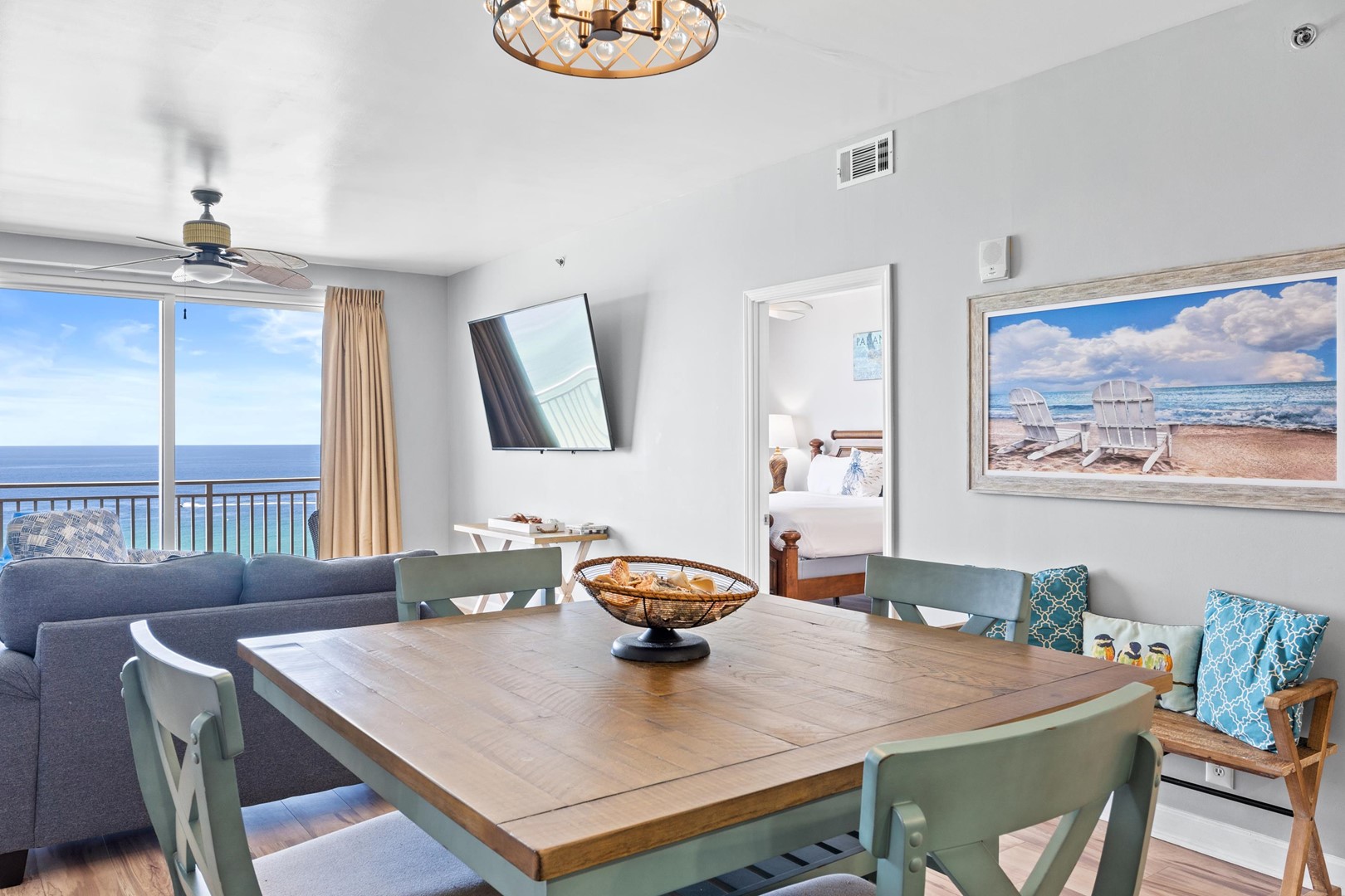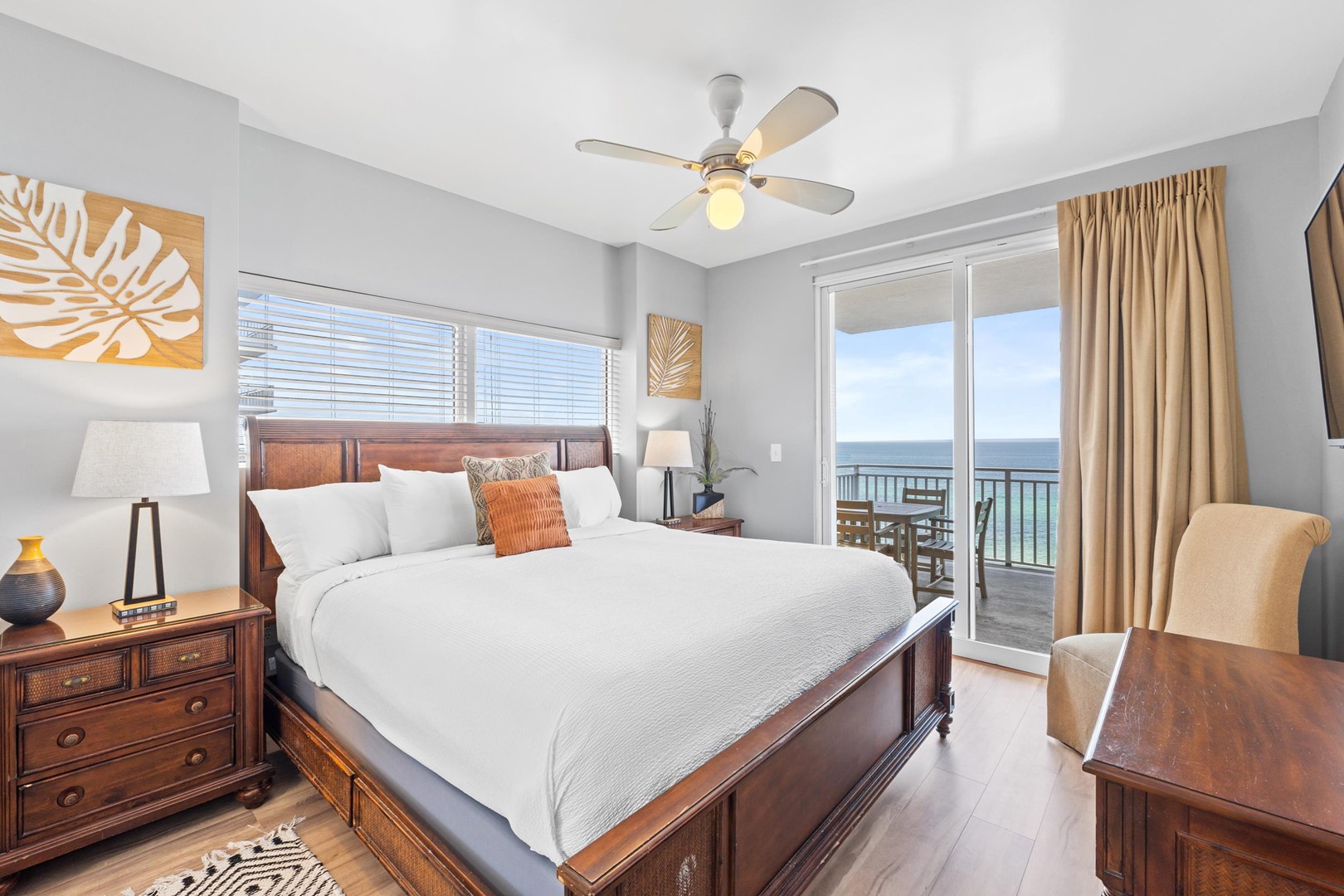 Splash Beach Resort rental 607W in Panama City Beach, Florida by Panhandle Getaways is a direct beachfront 2 bedroom plus bunk area, 2 bathroom vacation home complete with all of the conveniences of home. Guests will enjoy 2 gulf front primary bedrooms and incredible views from the direct beachfront extended corner balcony.