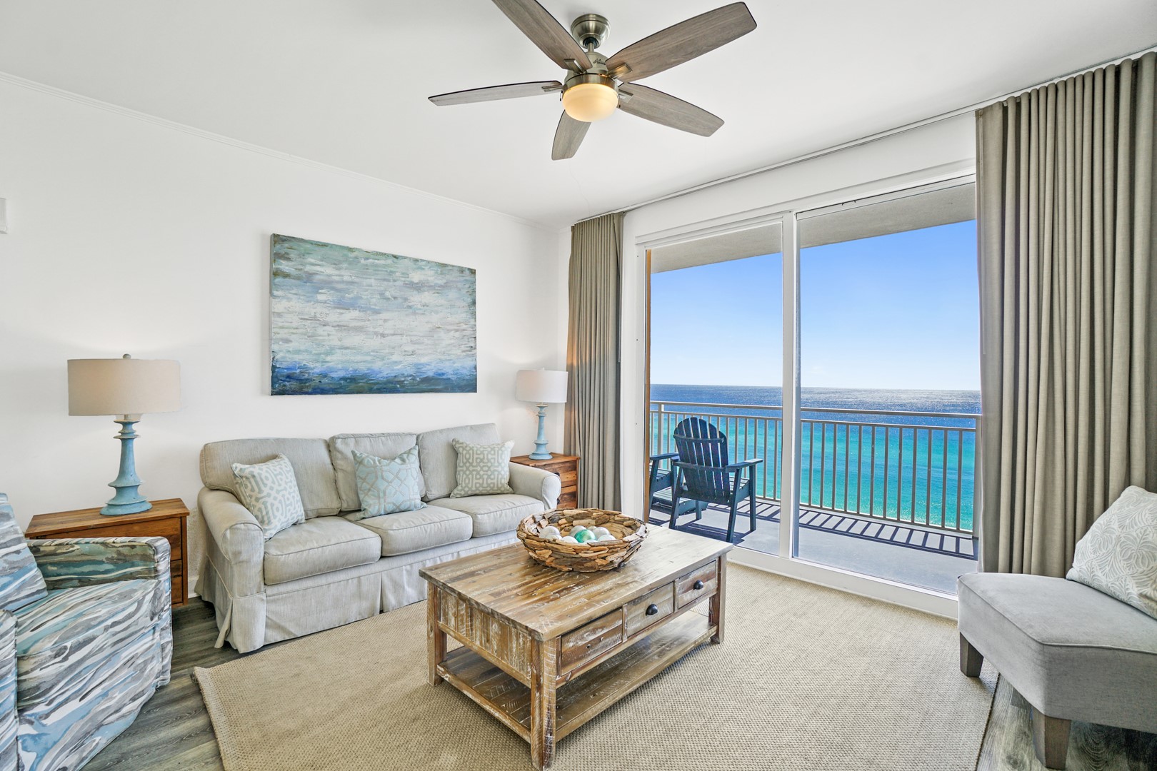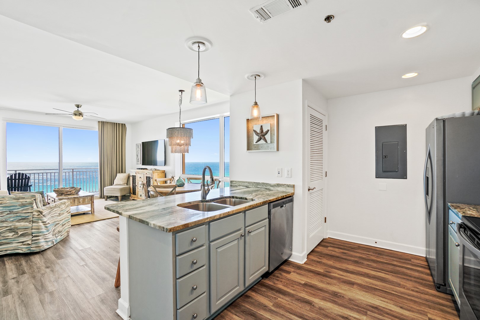 * Large Living Area with Gulf View, Balcony Access, Large TV