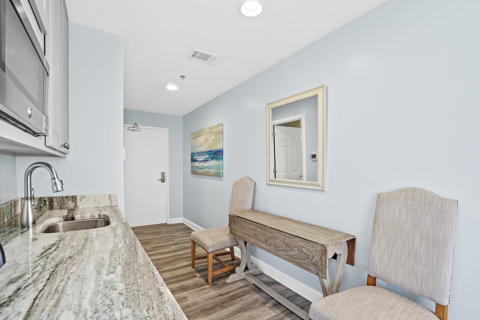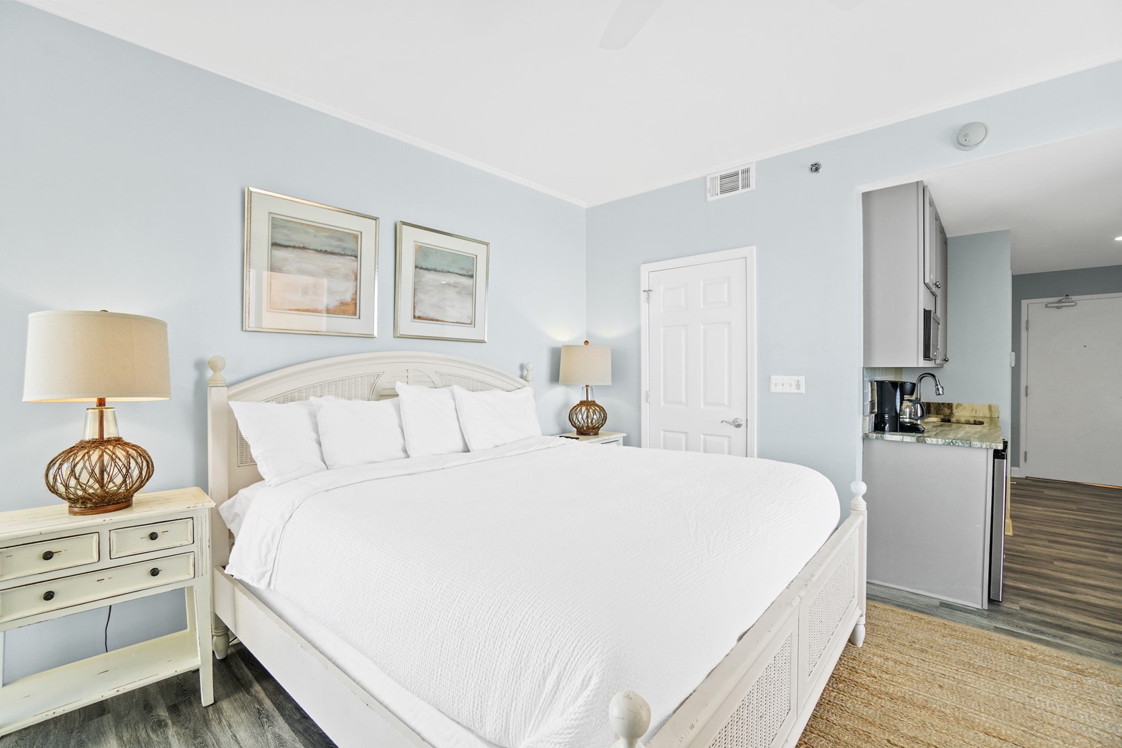 Perfect for larger families or couples traveling together, the condo features a full kitchen and two private suites and a guest bedroom. One of the suites is an efficiency lockout unit, complete with a mini-fridge, sink, microwave, and coffee maker for added convenience.