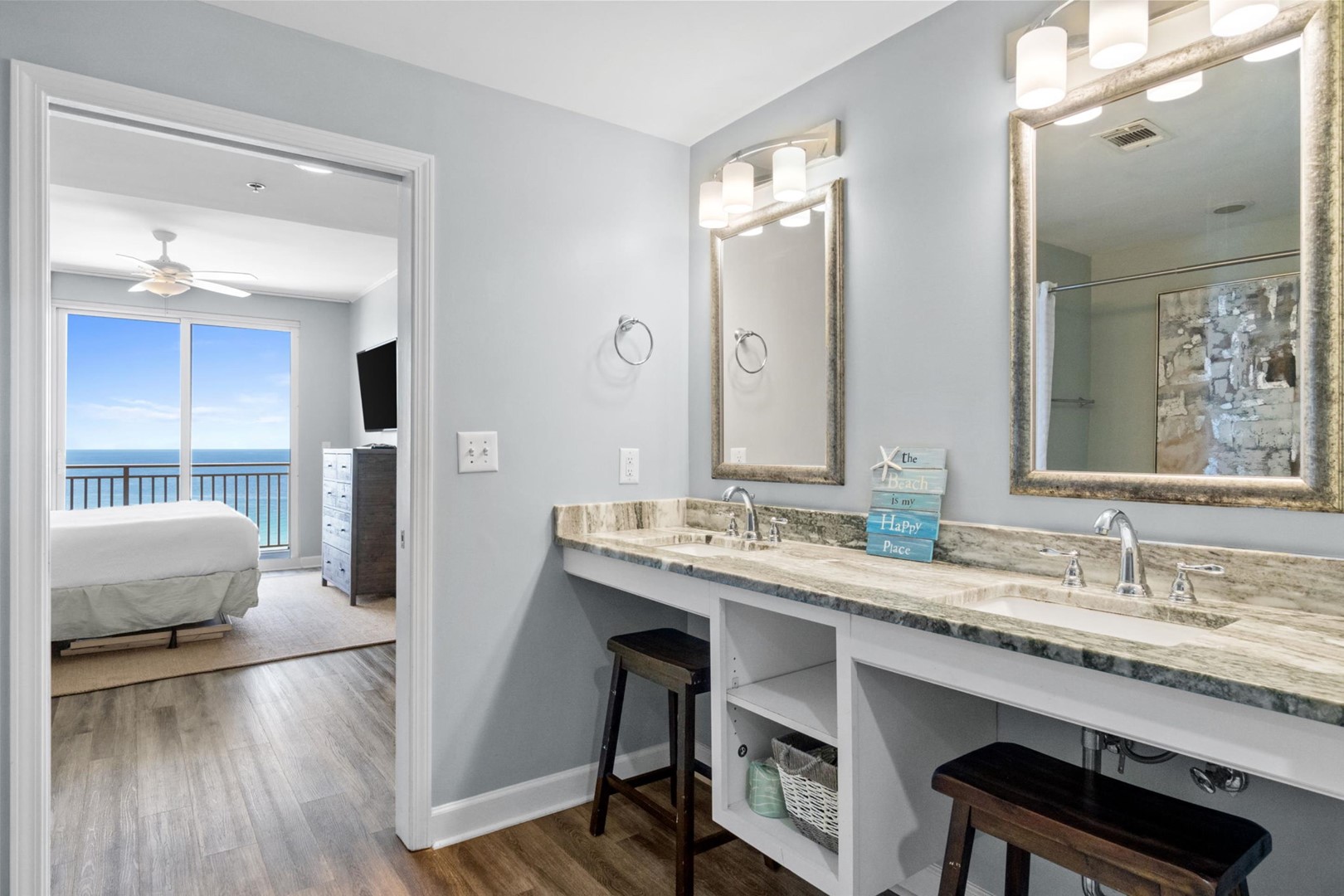 * Bedroom 1 - Gulf View, King Bed, Balcony Access, TV, En Suite Bathroom