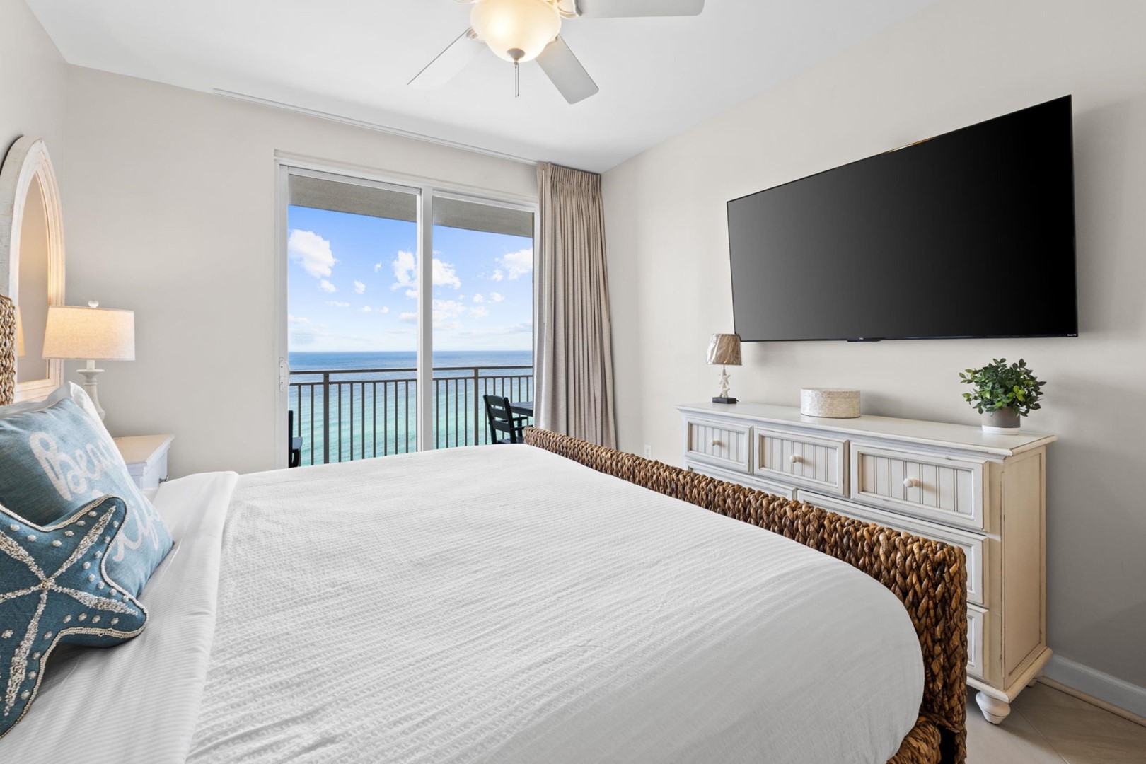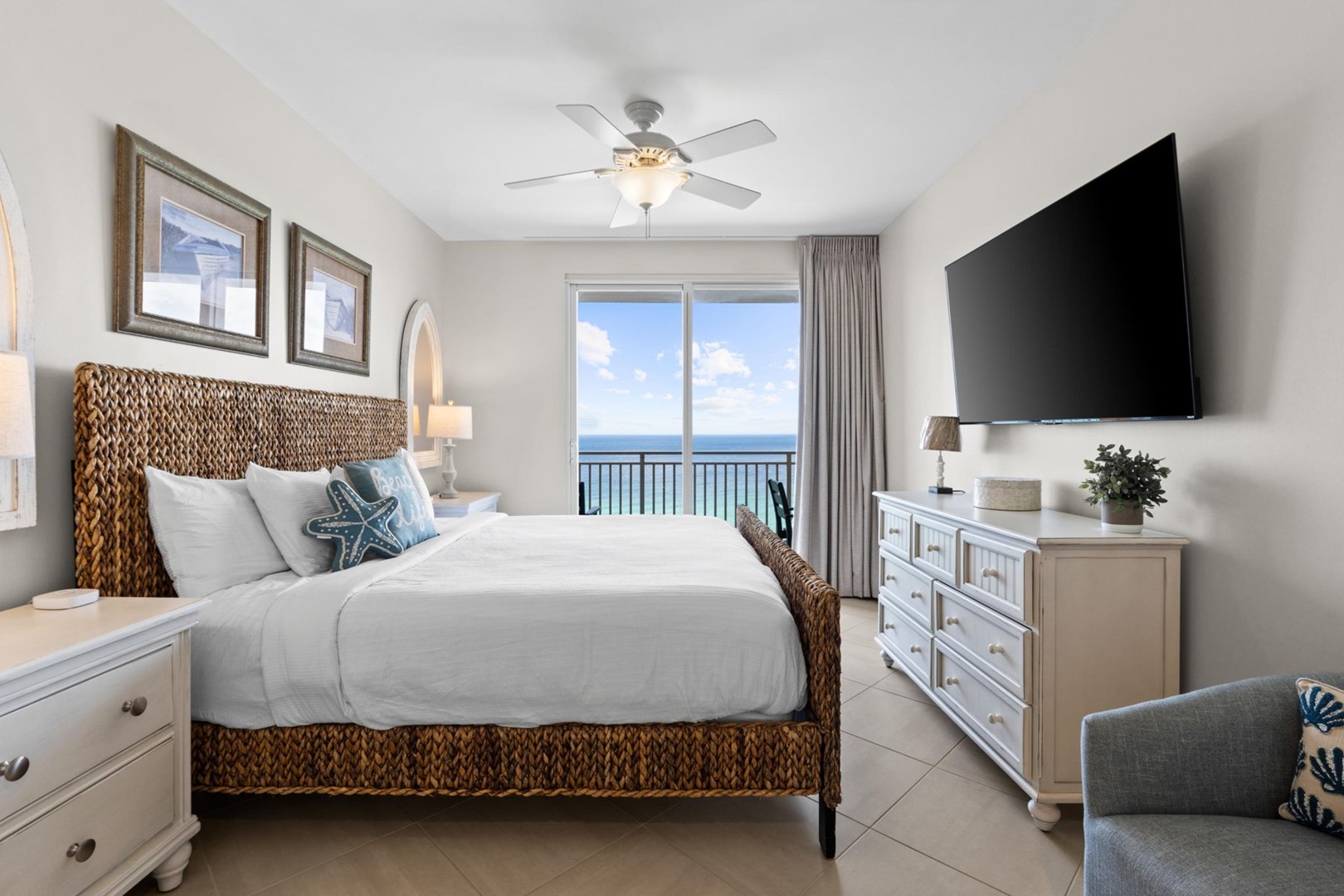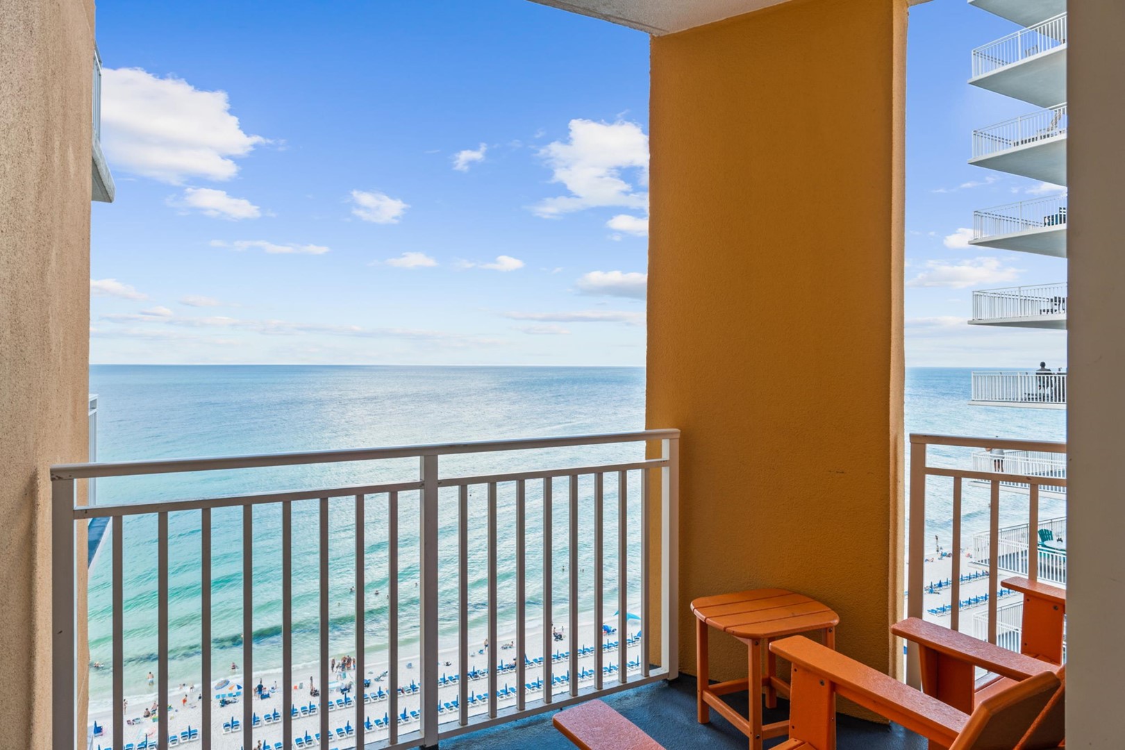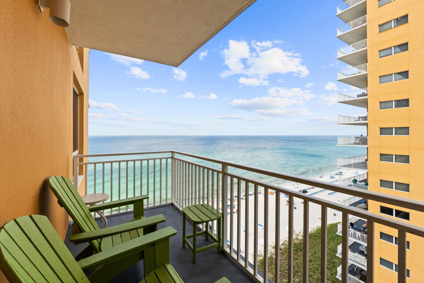 Splash Beach Resort condo rental 901E located in Panama City Beach, FL by Panhandle Getaways is a 3 bedroom, 3 bathroom direct beachfront vacation home complete with all of the conveniences of home. Corner Unit - 2 Gulf Front Primary Suites, Each bedroom with its own balcony.