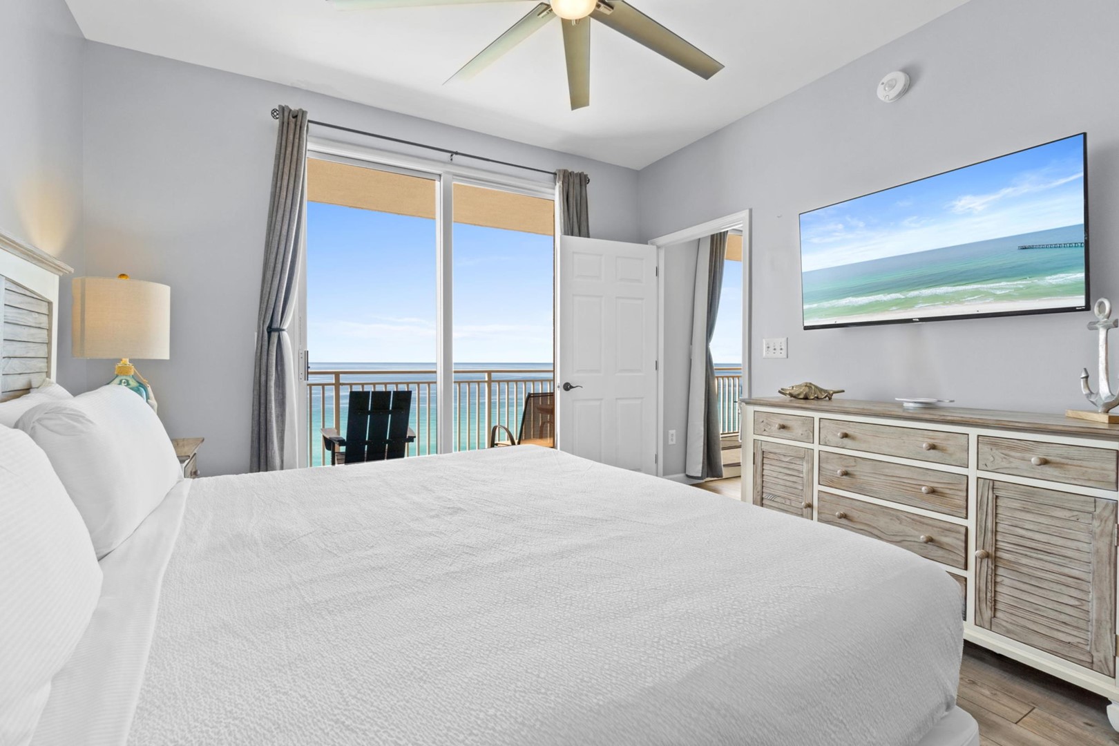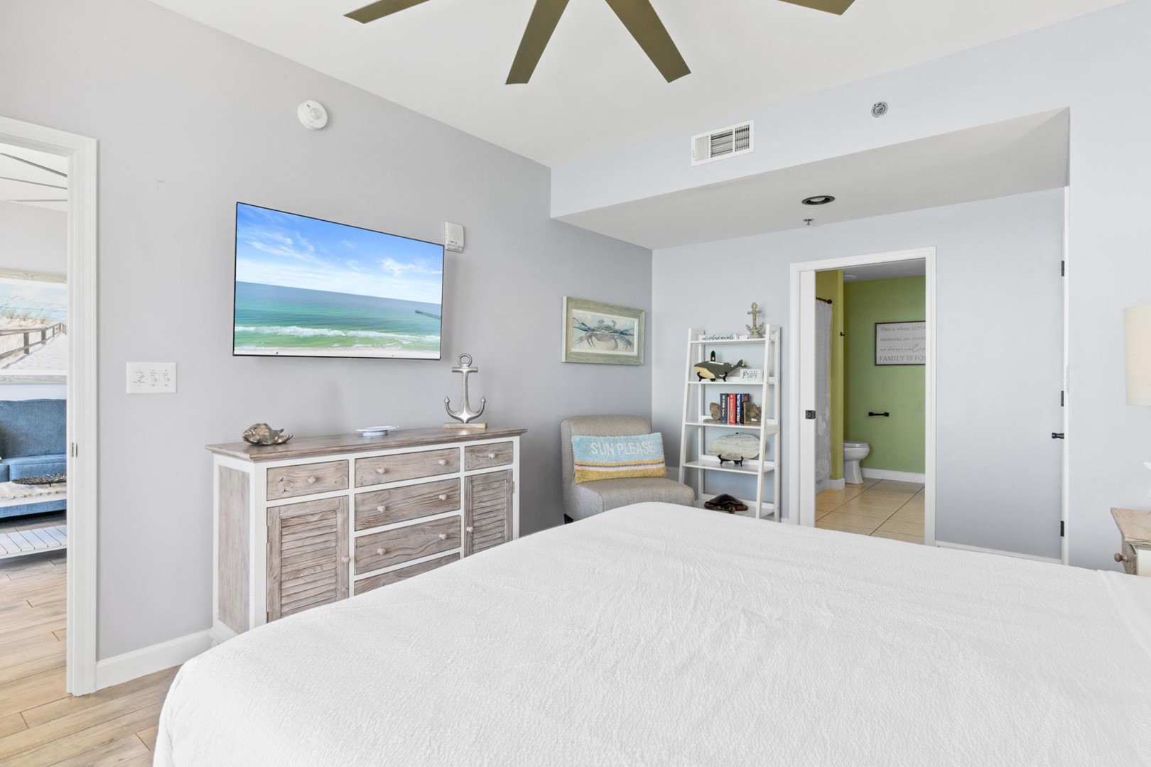 * Bedroom 1 - Gulf View, King Bed, 60" TV, Balcony Access, En Suite Bathroom