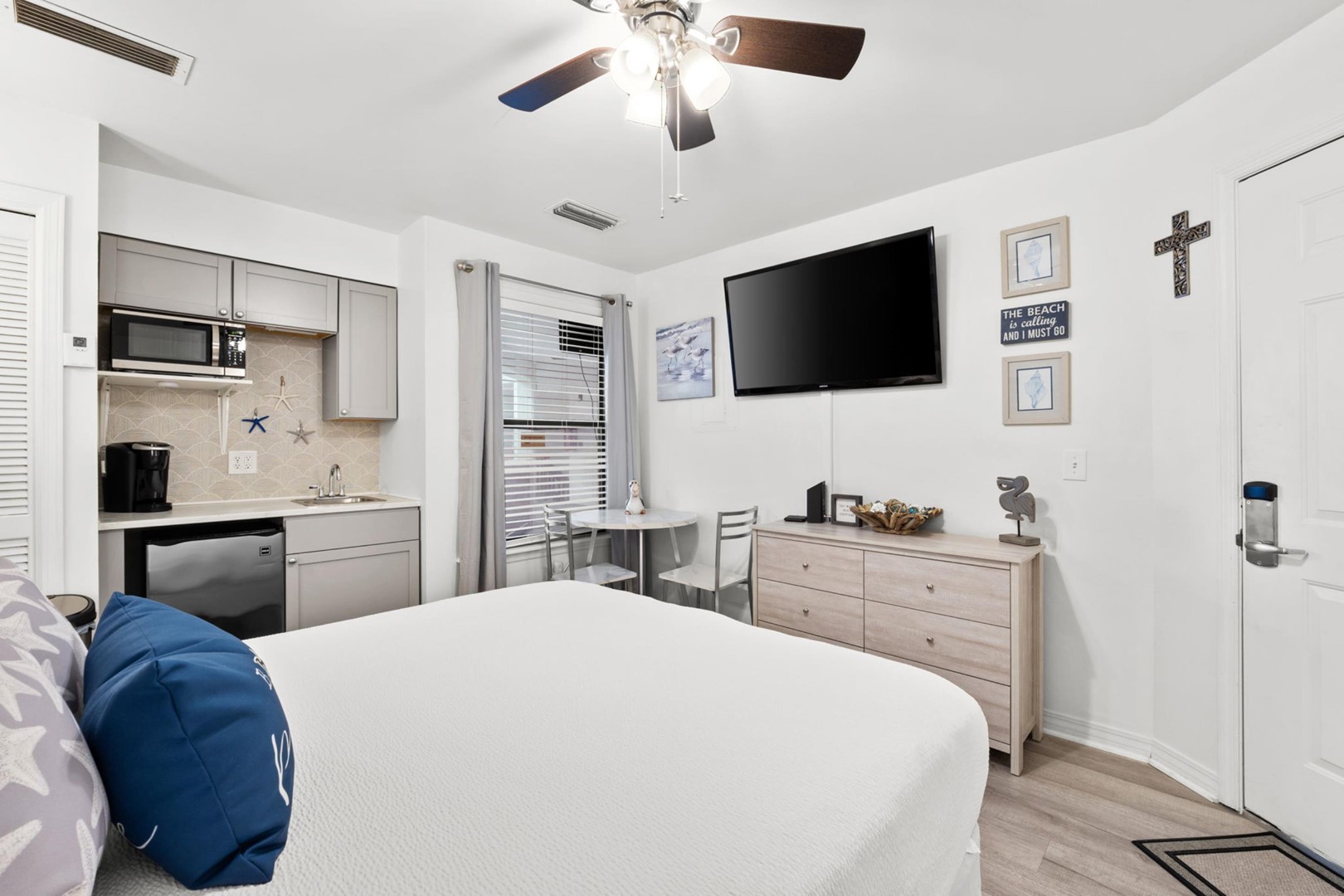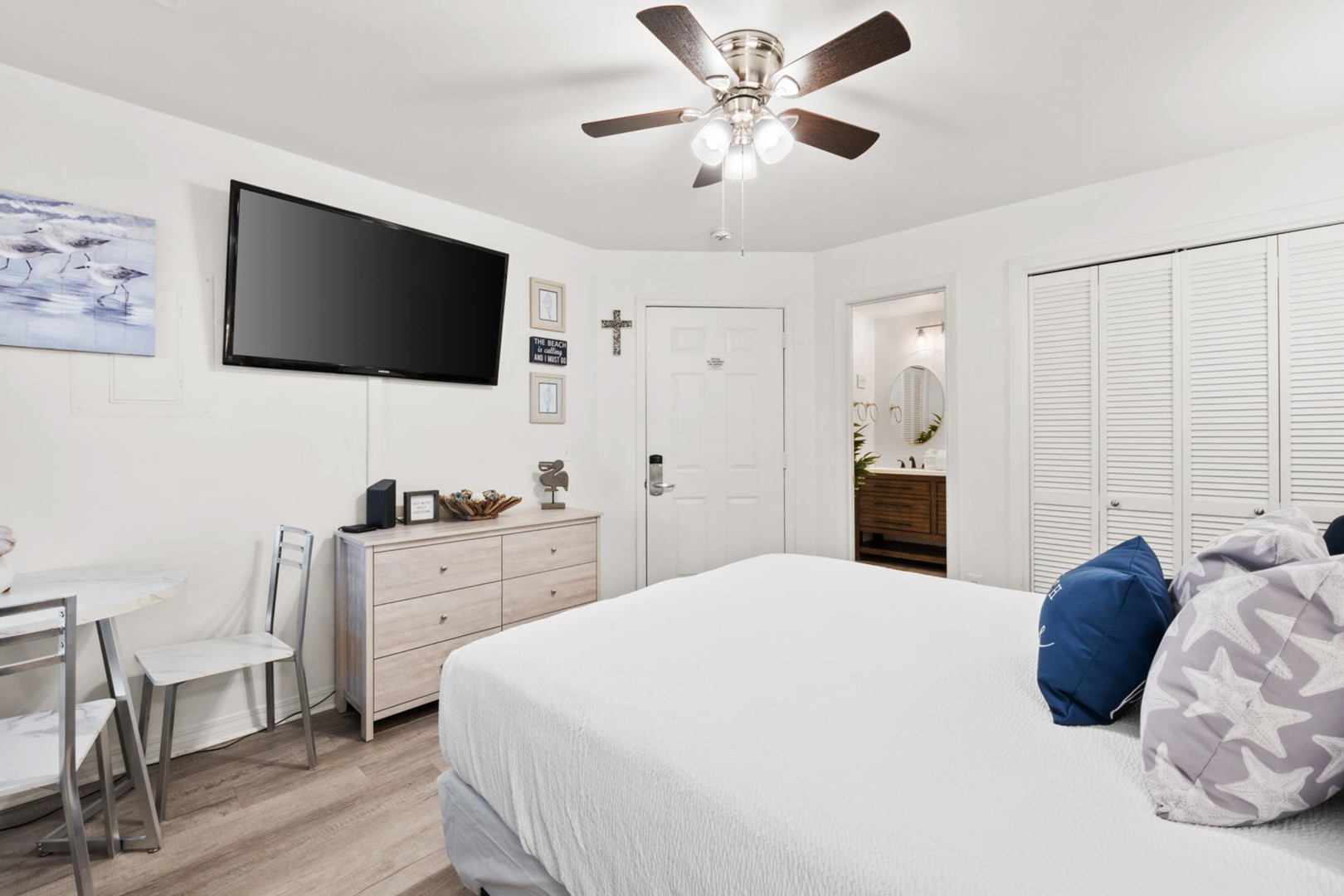 * Bedroom - Queen Bed, Large TV, En Suite Bathroom