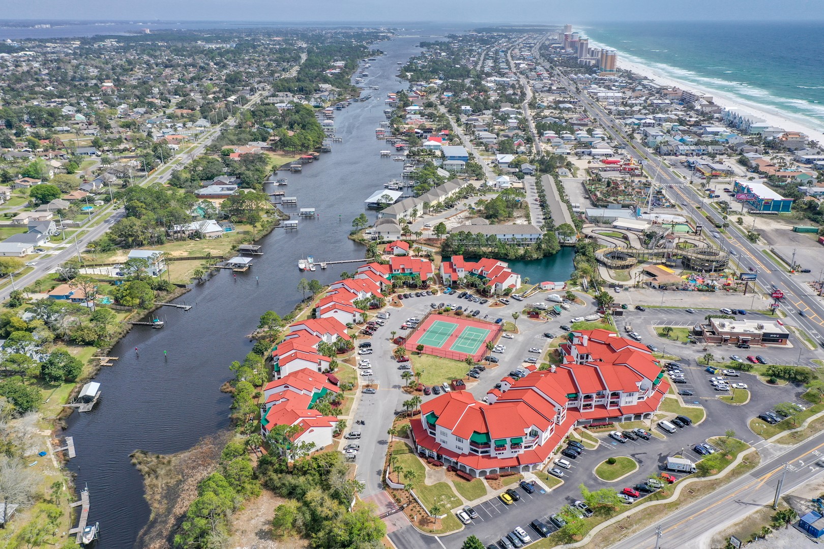 St. Thomas Square in Panama City Beach offers a relaxing coastal getaway with resort-style amenities just minutes from the beach. This gated community features a large community pool, lagoon dock access, tennis courts, and a welcoming clubhouse. Guests can enjoy outdoor grilling and picnic areas, a firepit, sauna, and convenient on-site parking. Perfect for families and couples looking for comfort, convenience, and fun in PCB.