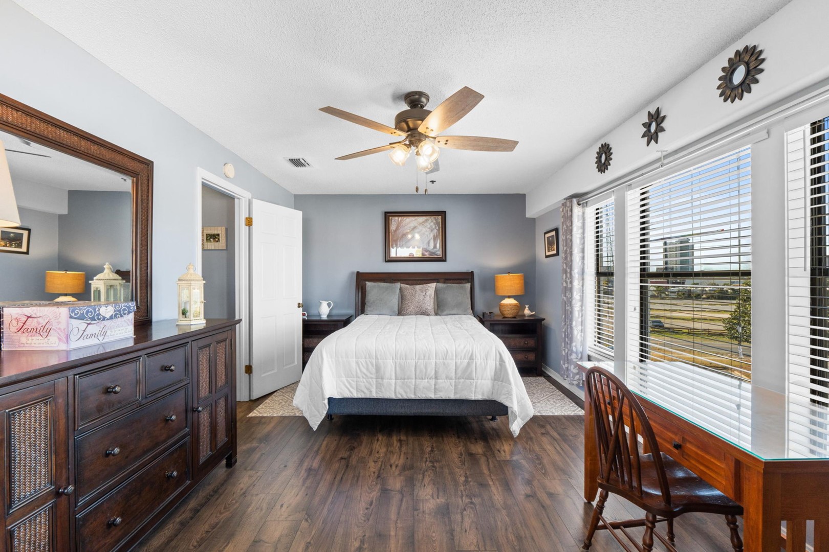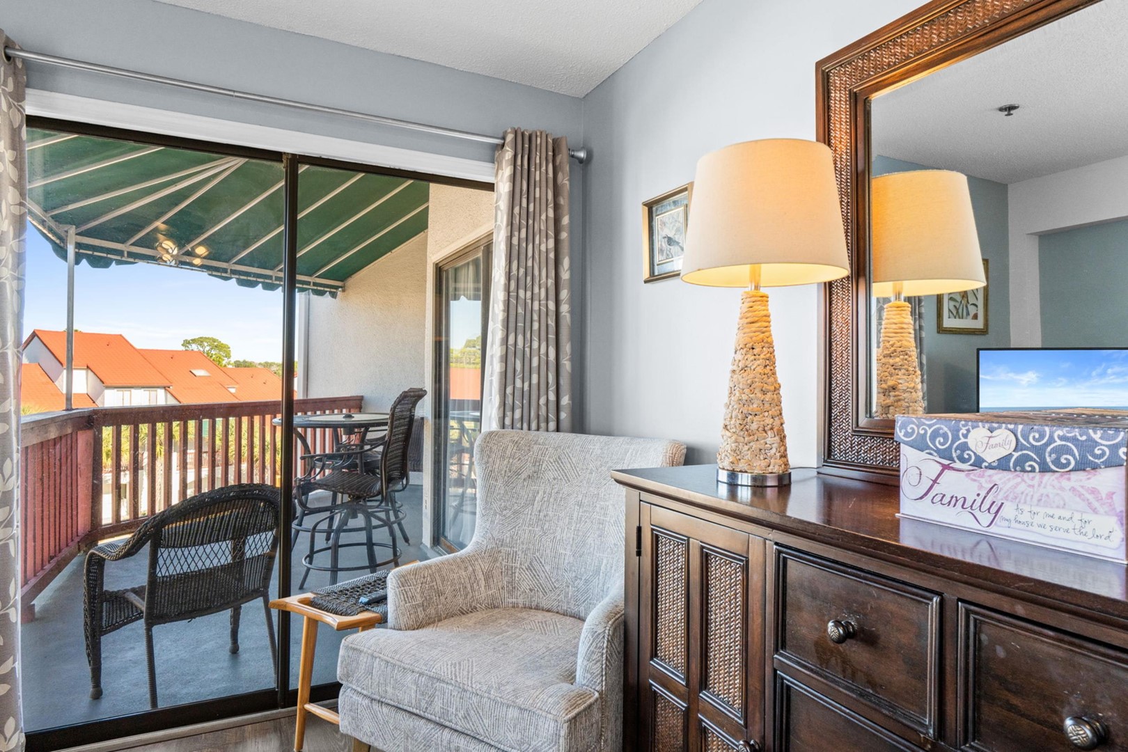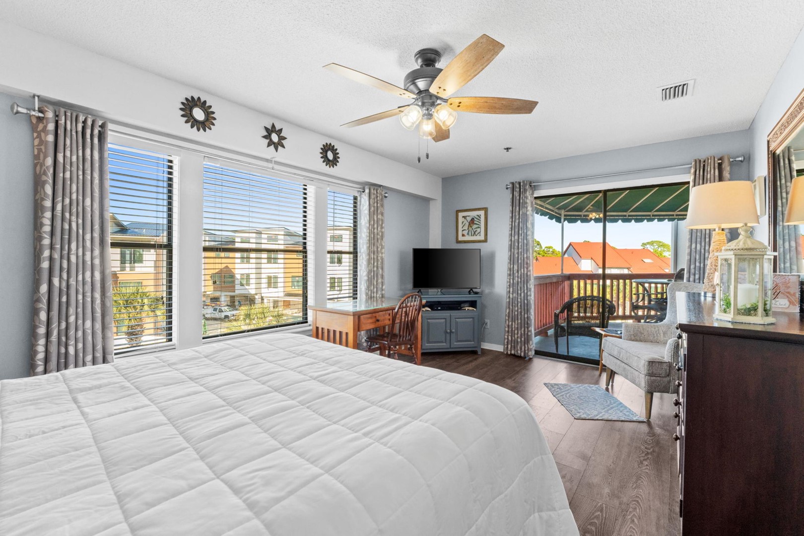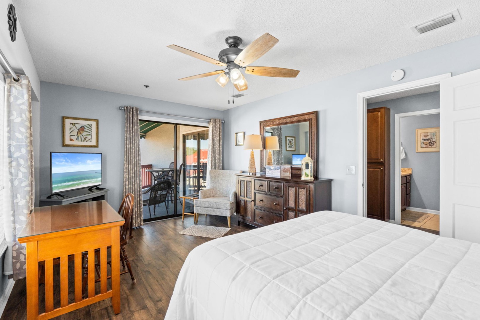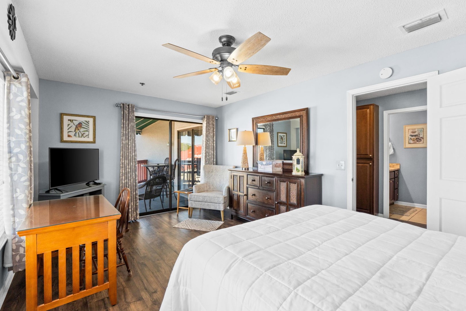 * Bedroom 1 - Queen Bed, Balcony, 36" Smart TV, En Suite Bathroom