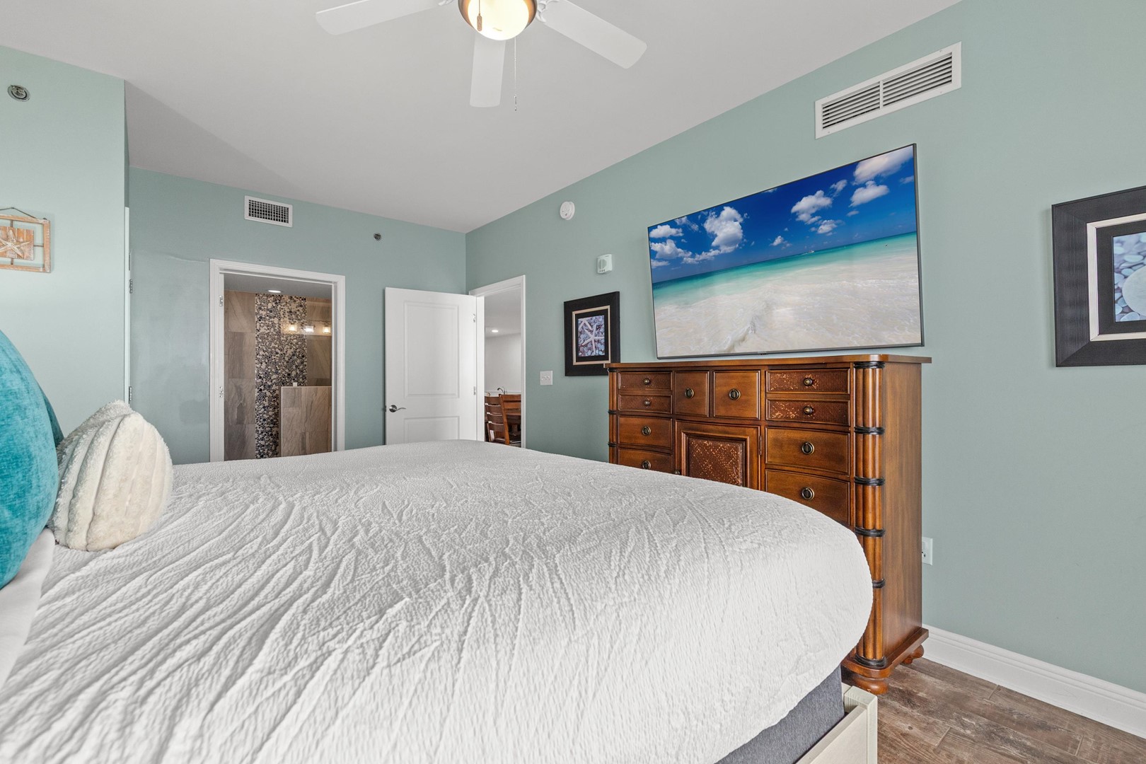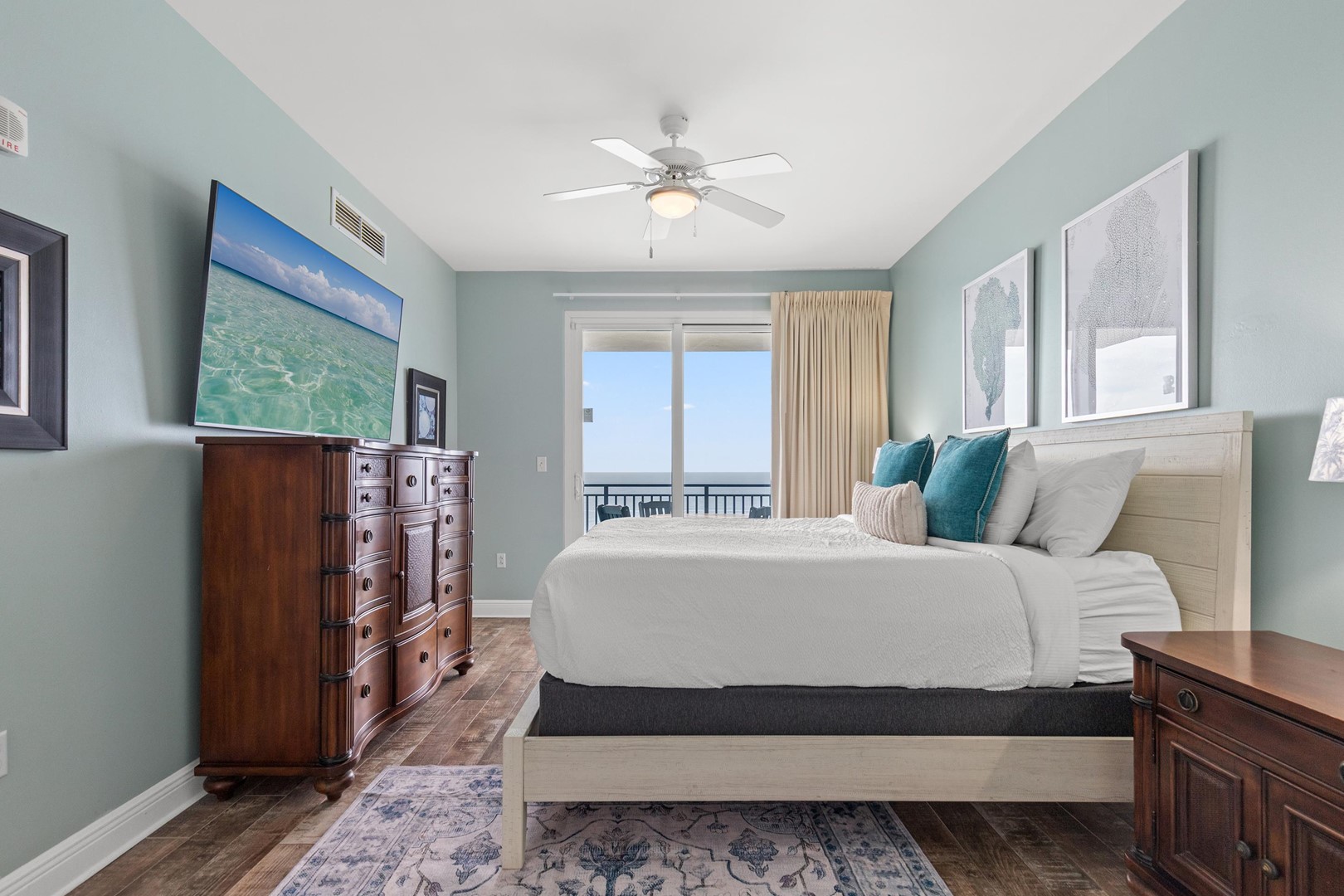 * Bedroom 1 - Gulf View, King Bed, Balcony Access, 65" Smart TV, En Suite Bathroom