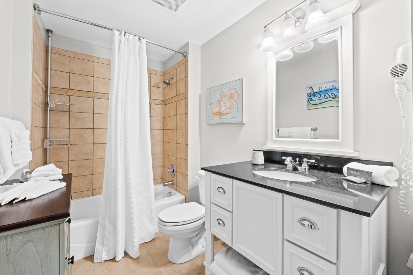 Panhandle Getaways furnishes a few essential items for guests to utilize until they can get to the grocery store. Initial Supplies include: Dishwasher soap, small washing machine powder, each bathroom has amenities (like hotel but NOT restocked) shampoo, conditioner, soap bar. One roll of toilet paper in each bathroom & one paper towel roll in the kitchen. All bed linens and towels are provided. We encourage guests to bring beach towels for use at the pool and beach.