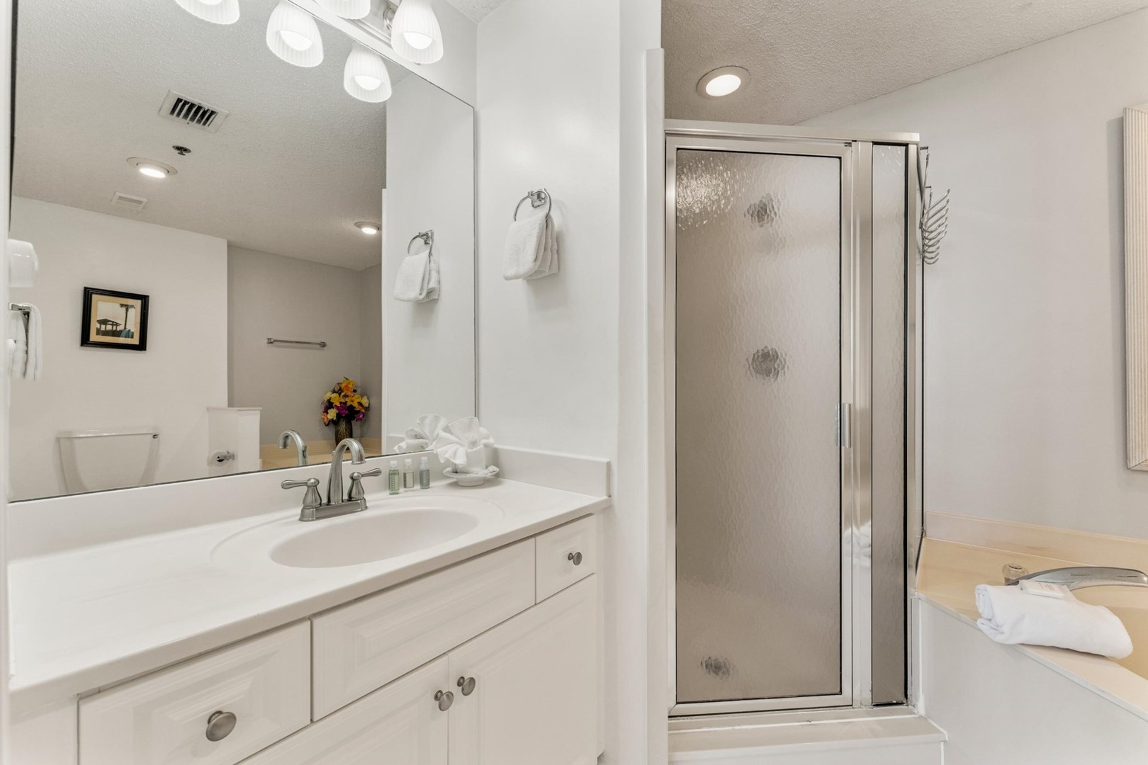 The condo is exactly as the pictures shown. The condo was clean, roomy and well maintained with a good size kitchen and living room. Master bedroom was lovely with a king size comfortable bed. There was a Jacuzzi tub in the master bath, large walk in shower, two sink/vanities and large walk in closet with plenty of space for additional clothing. The balcony was great with extra seating, table and lounge chair. You can see the ocean from the large sliding glass windows/doors from both the kitchen/living room and bedroom. The pool is well maintained with plenty of lounge chairs and tables with umbrellas. There is also an outdoor jacuzzi and exercise equipment (building) on the the property.This was our first time to the Florida Panhandle. The sand on the beach was the whitest and pristine we have ever seen (no garbage and well maintained). The water was clear with beautiful turquoise and blue colors. You can rent beach chairs/umbrellas or bring your own. From the condo you have a gorgeous view of the ocean and pool area. We were glad we rented a car as most restaurants are not close, although you can walk to the Back Porch restaurant. There are many other restaurants on the water and other choices inland. Highly recommend Moe's Original BBQ and Harbor Docks. There are also many seafood markets nearby. Be sure to read the property emails before you arrive as they provide check in specifics. You must pay 15 per guest for wrist bands for pool and beach accJennie - Posted: 3/24/2025