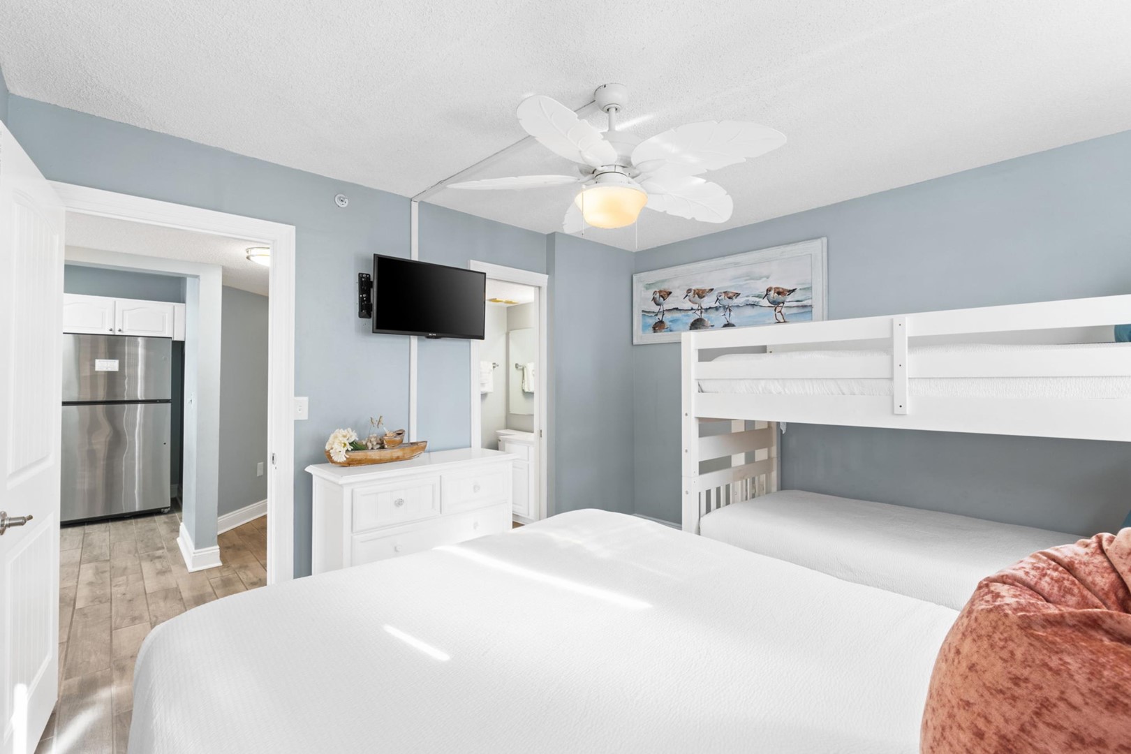 * Bedroom 2 - Queen, Bunk Bed (T/T) TV