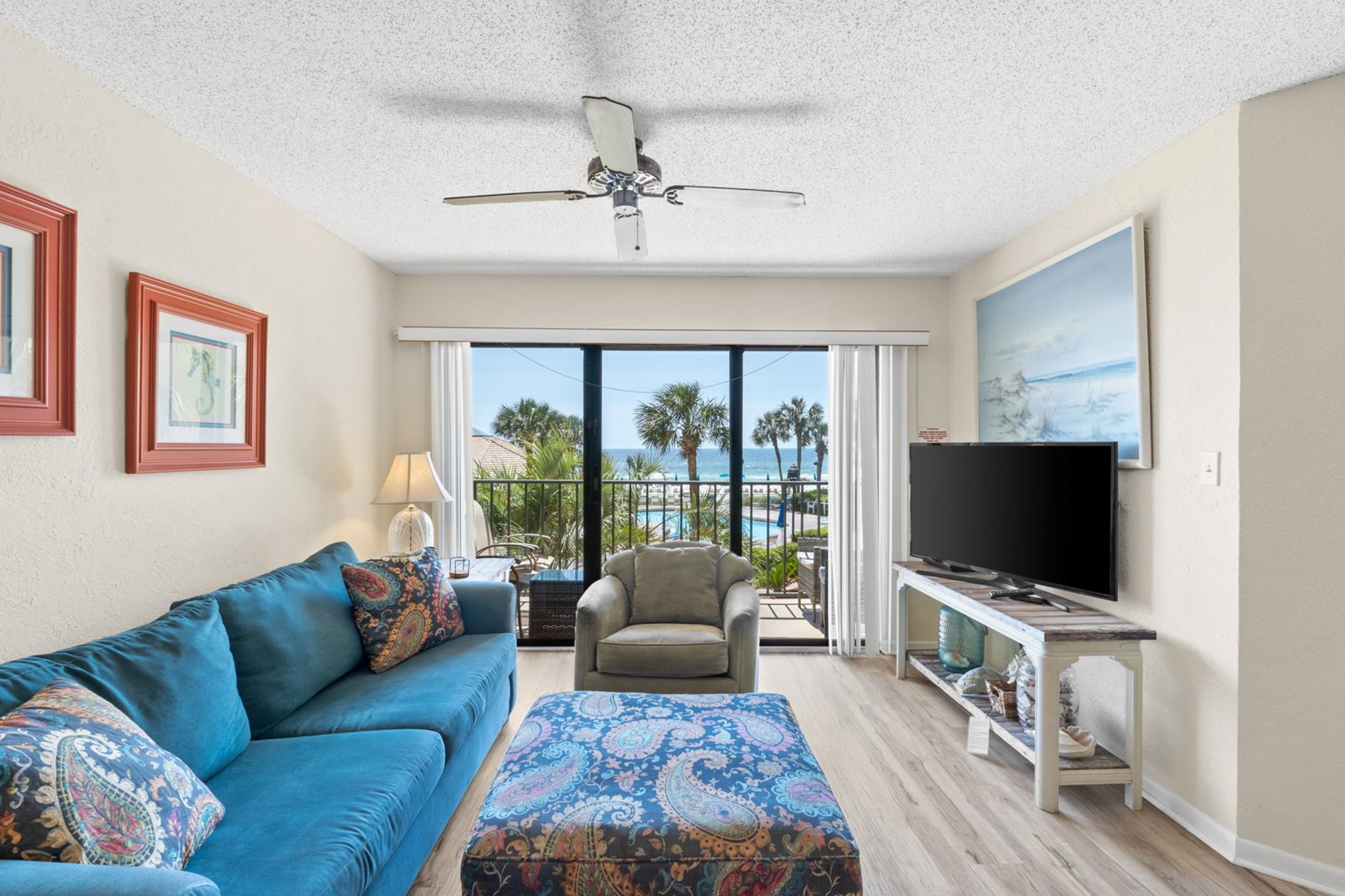 Located directly on the Gulf of Mexico, Summerhouse features two-bedroom, two-bath units, each with a balcony overlooking the gulf waters. Summerhouse is found on the east end of PCB, convenient to all the action the coastal town offers. Guests have full access to a wide range of amenities that include two gulf front pools, gazebo, hot tub, jet ski rentals and more beach services, pickleball and tennis courts, beach volleyball, and so much more. From Memorial Day through August, Summerhouse hosts summer movies under the stars, live music, karaoke, face painting for the kids, all sure to enhance your time spent there. The resort also has beach wheelchairs available for those who may need them.
