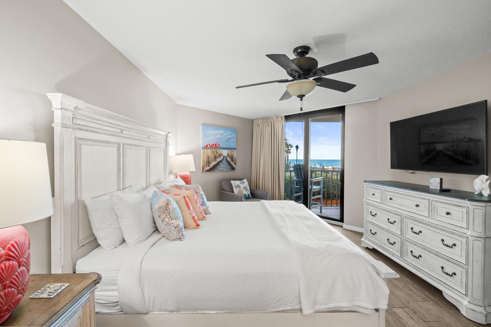 * Bedroom 1 - King Bed, Gulf View, 55" TV, En Suite Bathroom