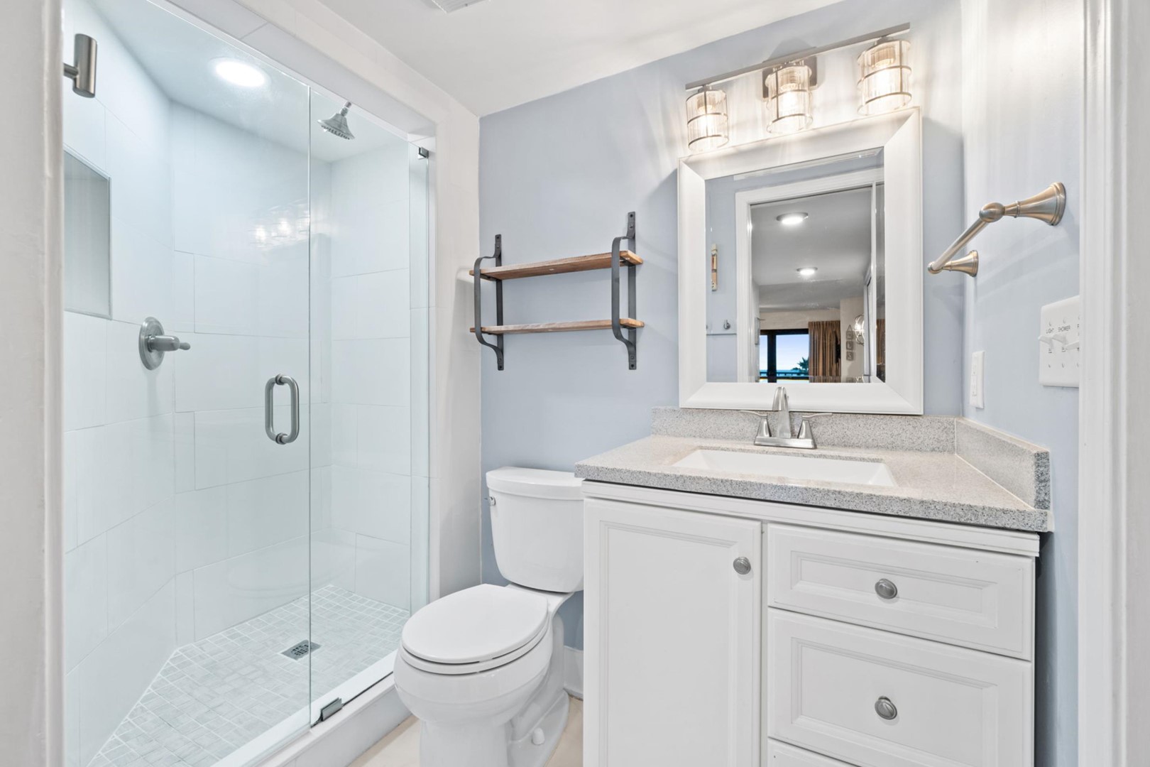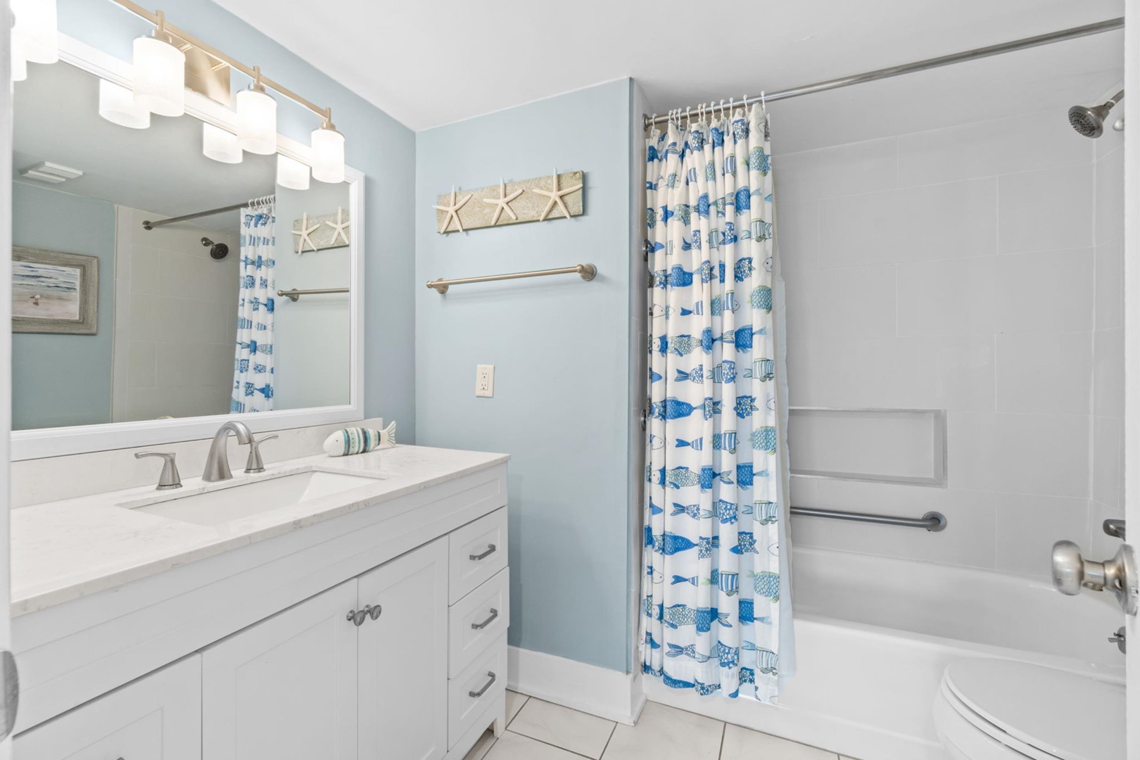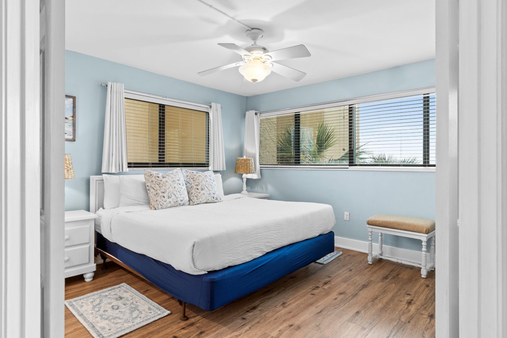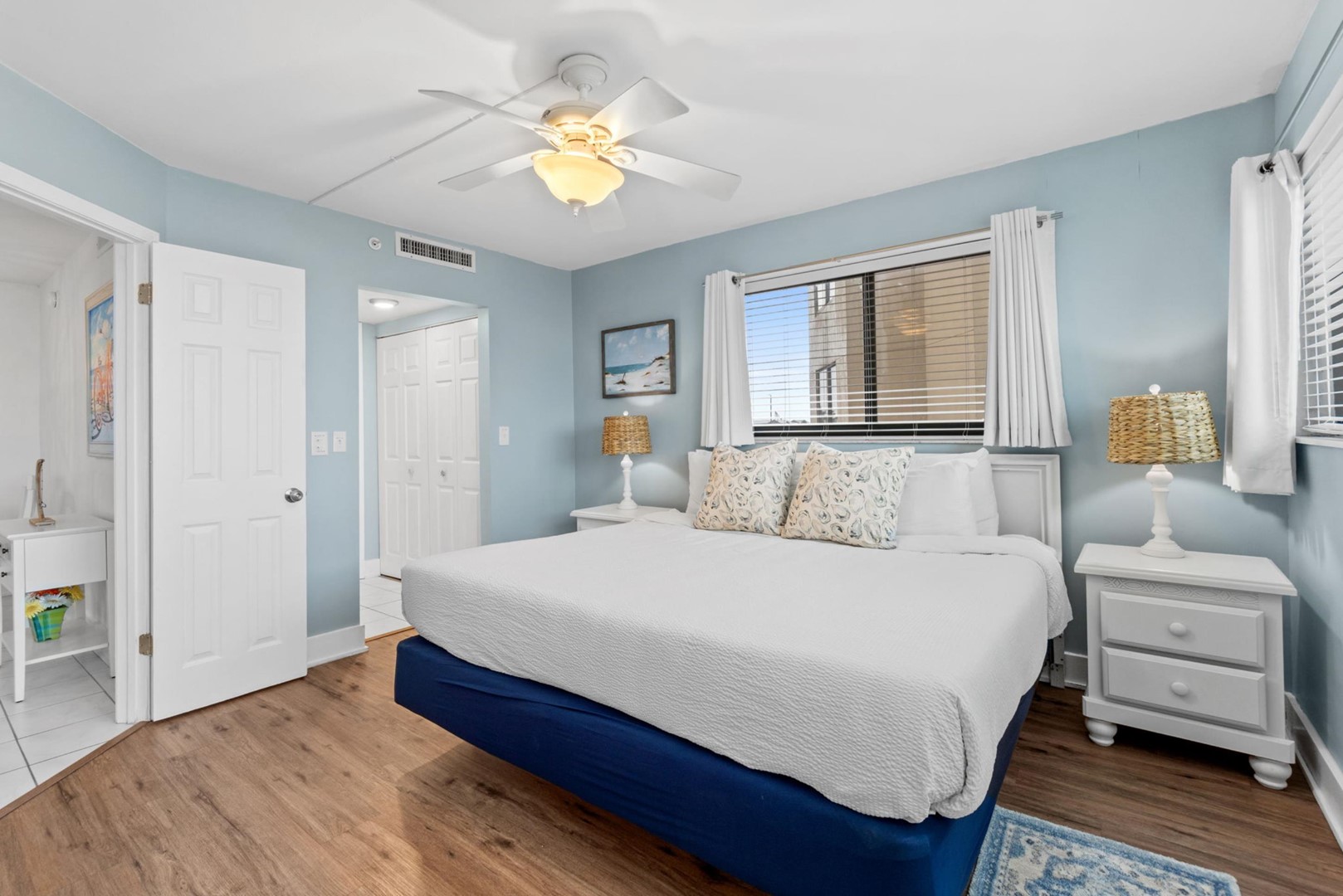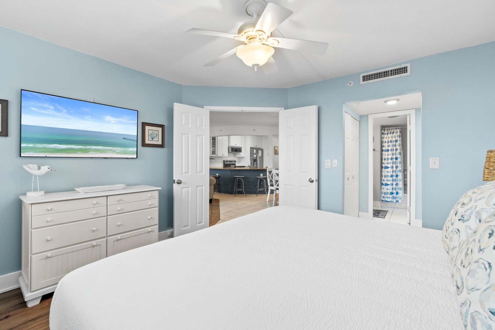 * Bedroom 1 - King Bed, Gulf View, 50" TV, En Suite Bathroom with Grab Bars