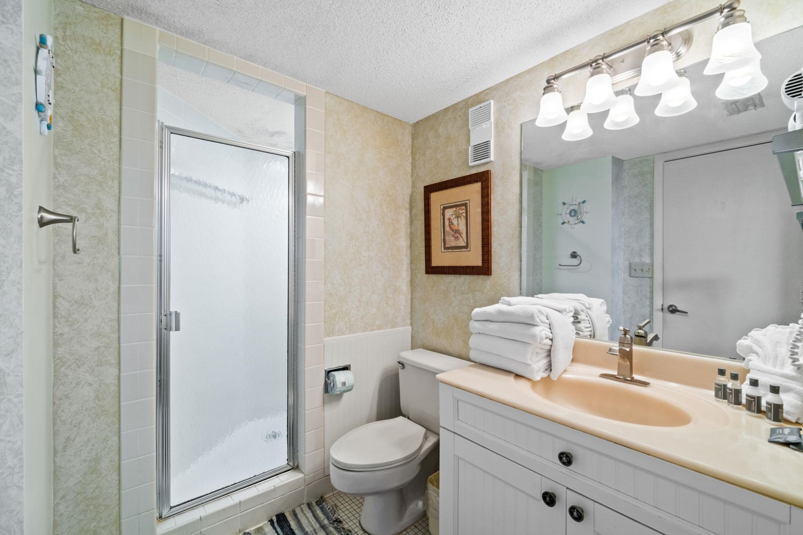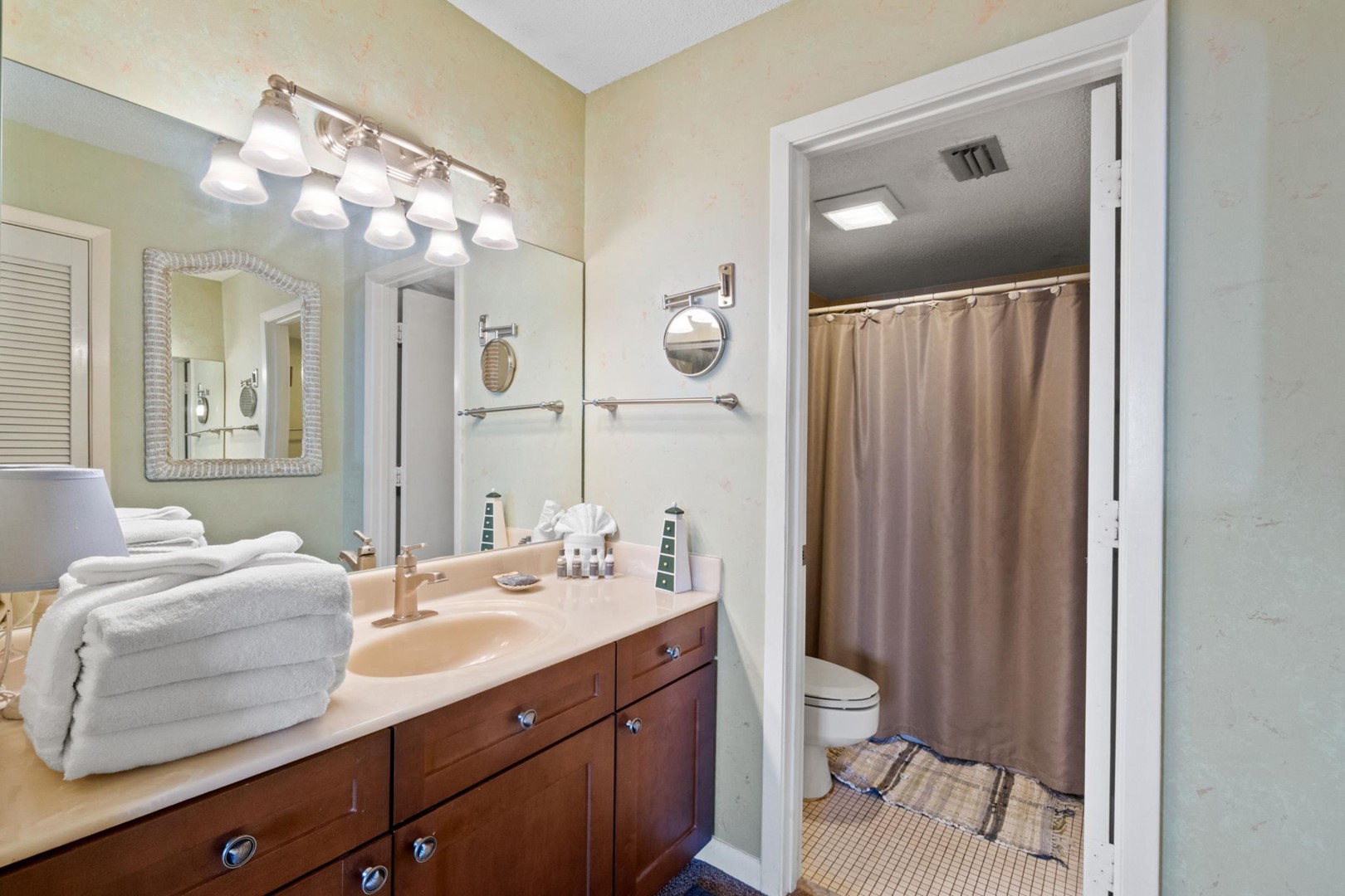 Panhandle Getaways furnishes a few essential items for guests to utilize until they can get to the grocery store. Initial Supplies include: Dishwasher soap, small washing machine powder, each bathroom has amenities (like hotel but NOT restocked) shampoo, conditioner, soap bar and body wash. One roll of toilet paper in each bathroom & one paper towel roll in the kitchen. All bed linens & towels are provided. We encourage guests to bring beach towels for use at the pool and beach.