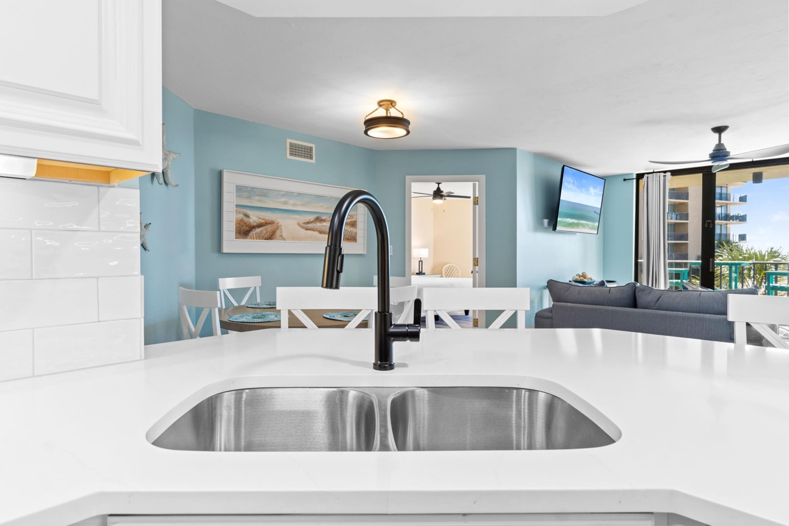 * Living Area - Full Sleeper Sofa, Gulf View, TV
