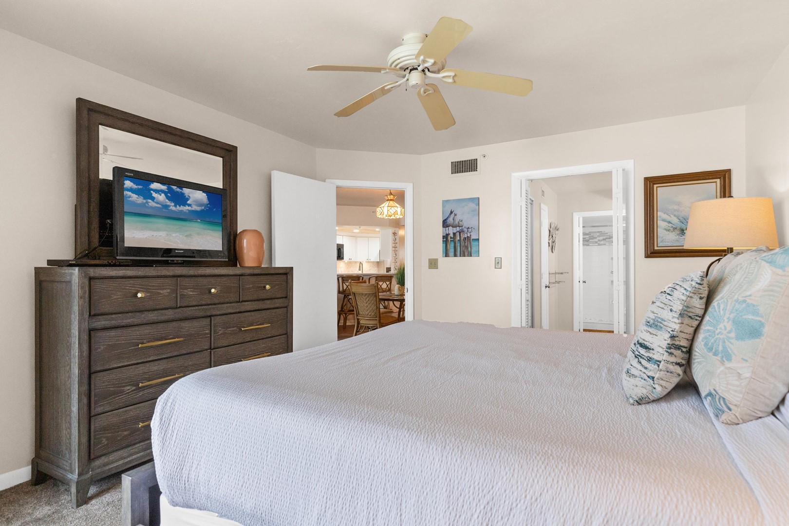 * Bedroom 1 - King Bed, Gulf View, 32" TV, En Suite Bathroom