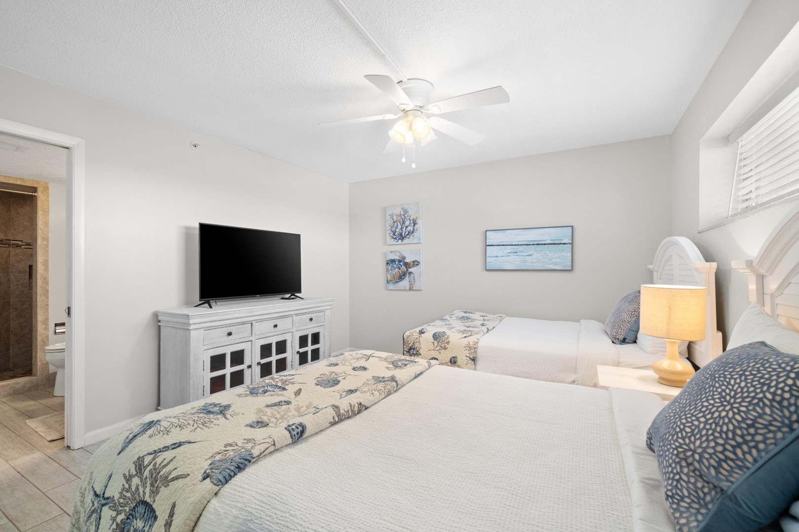* Bedroom 2 - 2 Full Beds, 35" TV, En Suite Bathroom