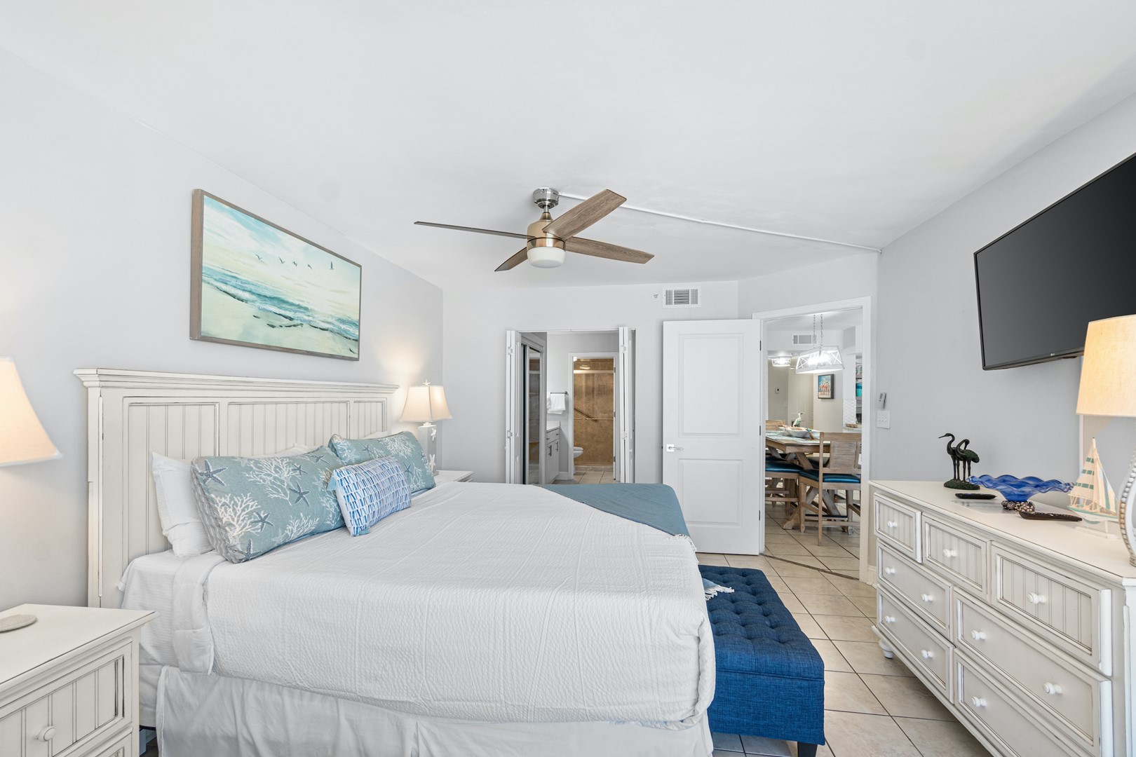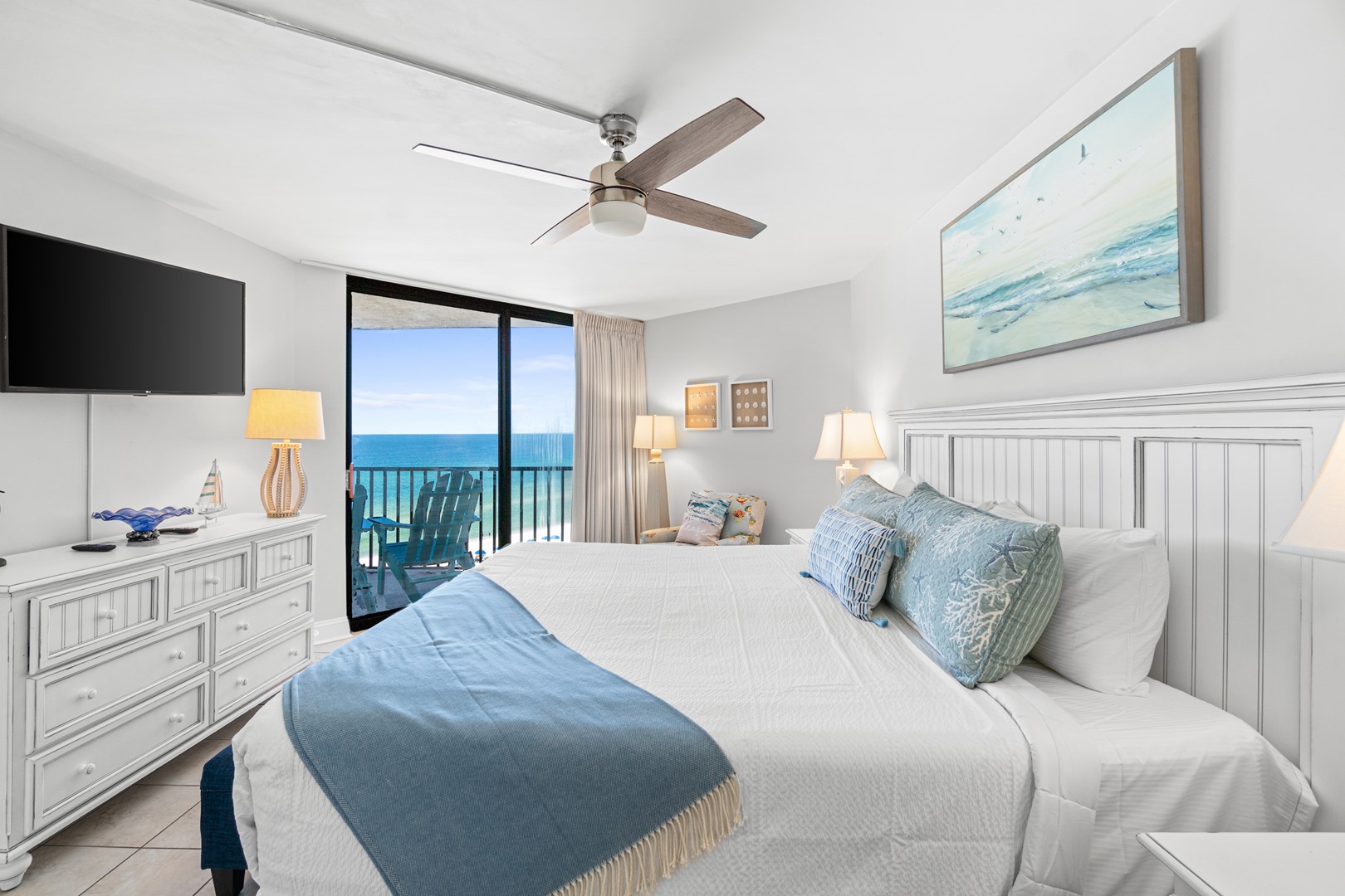 * Bedroom 1 - King Bed, Gulf View, 42" TV, En Suite Bathroom