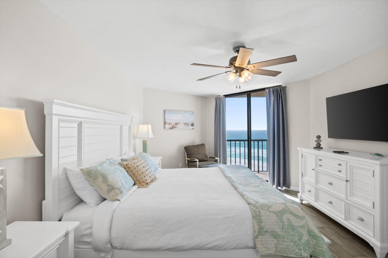 * Bedroom 1 - King Bed, Gulf View, 55" TV, En Suite Bathroom