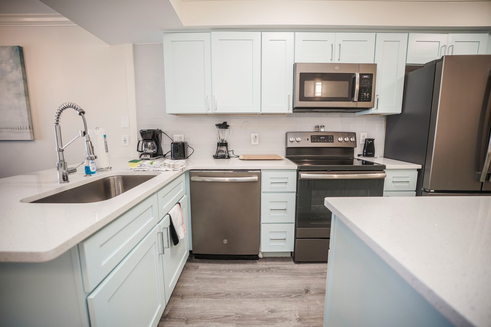 I was so happy to find this listing - it was very hard to find a space to stay that had 2 large bedrooms (king bed in both), 2 bathrooms and a beautiful waterfront view with upgraded finishes. The property was very clean and was very bright and beautifully decorated. I would say the only downside to this property is that you are expected to pay for beach chairs everyday and this gets very pricey (it would be nice if there was a note about this when booking.) Also, double check the property before going to the grocery store if you plan to cook because you will need all the essentials that are not included such as spices, oil, etc.stephanie h. - Posted: 10/19/2019