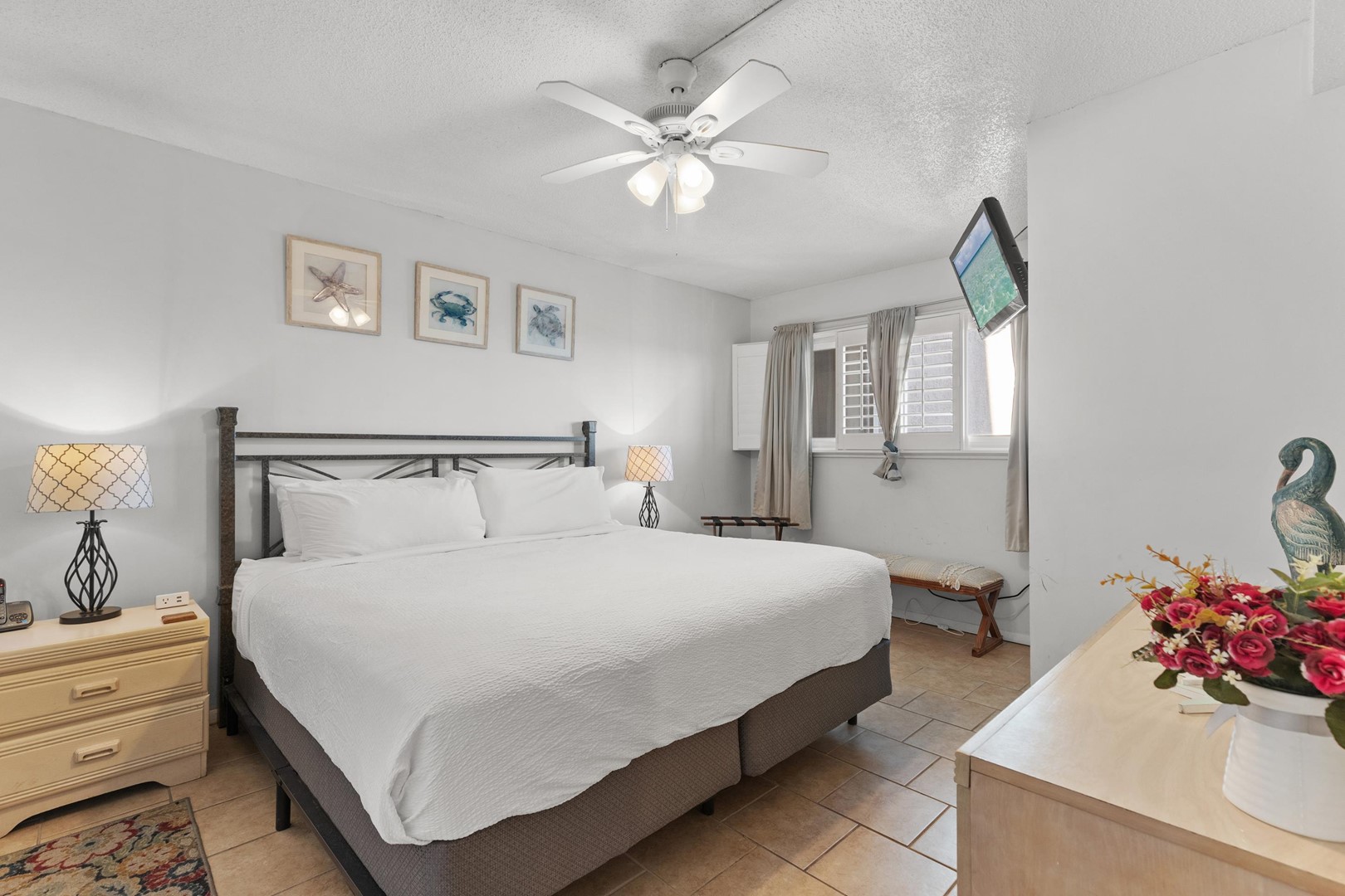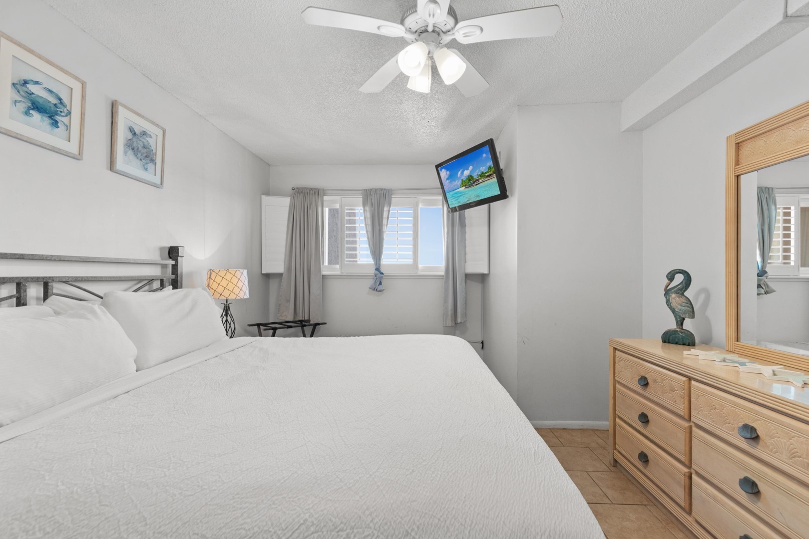 • Bedroom: King bed, 40" TV