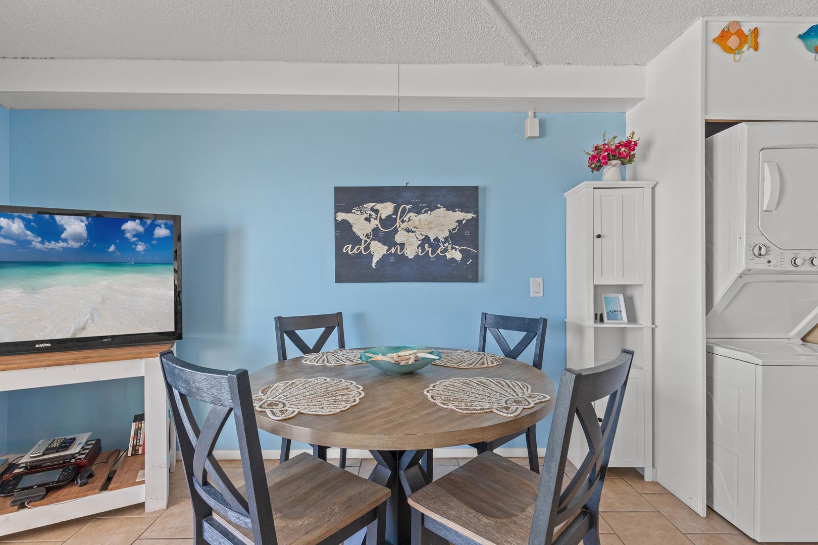 A starter pack of toiletries, paper products, and detergents is provided for your arrival. Guests should plan to purchase additional supplies for the remainder of their stay. Bed linens and bath towels are included; please bring beach towels for pool and beach use.