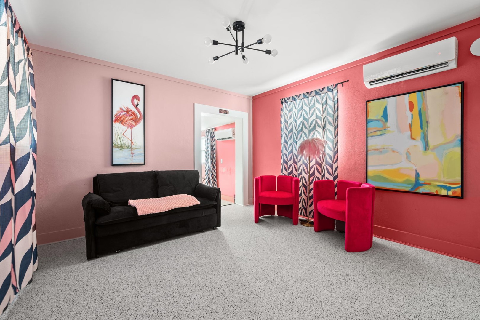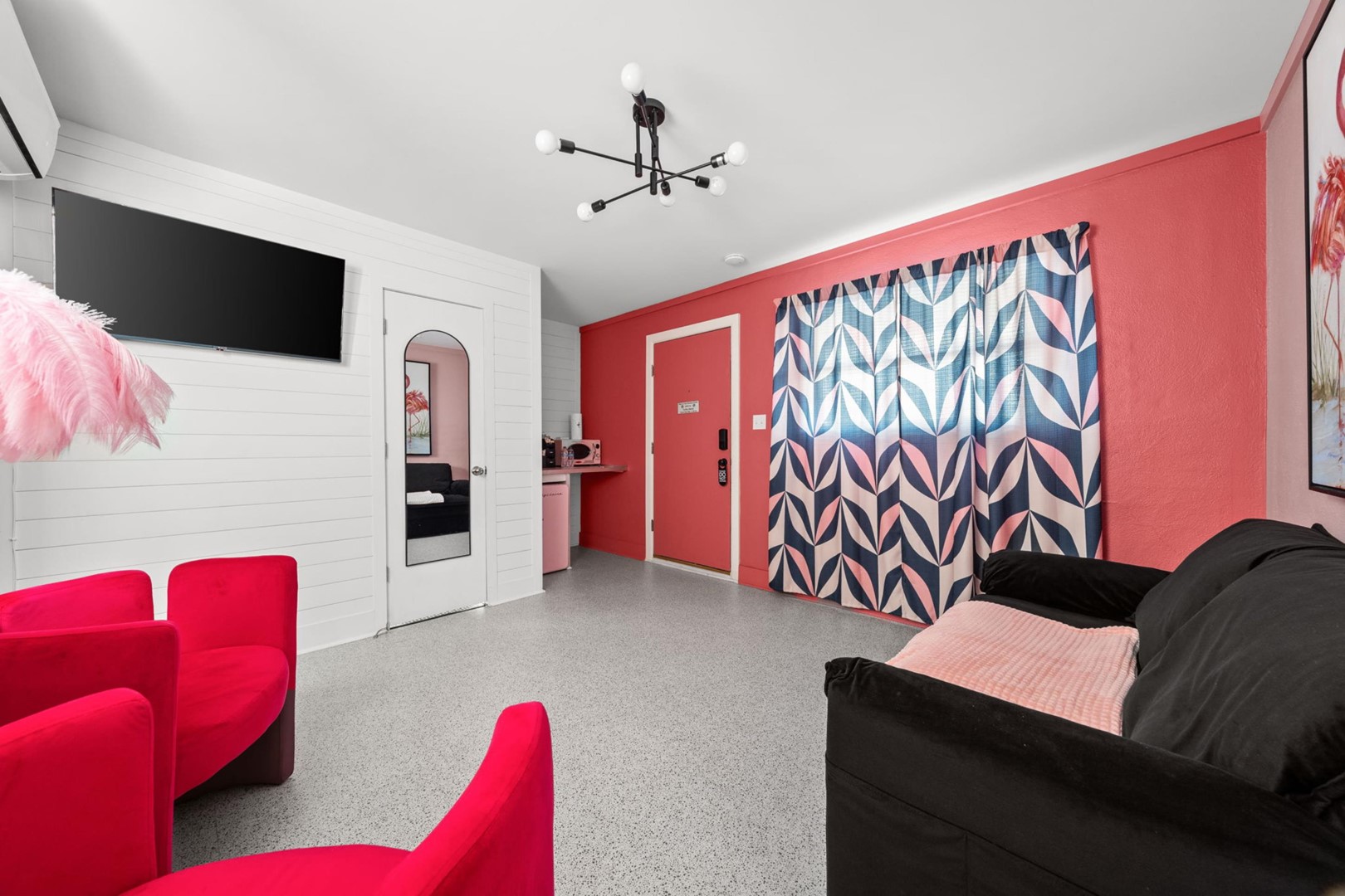 The Pink Flamingo Boutique Motel blends nostalgic Florida charm with modern comfort. When you rent the flock, the entire experience becomes your own private coastal retreat. With its colorful retro aesthetic, unbeatable location, and exclusive amenities, this one-of-a-kind property is perfectly designed for unforgettable group getaways on Florida’s Forgotten Coast.
