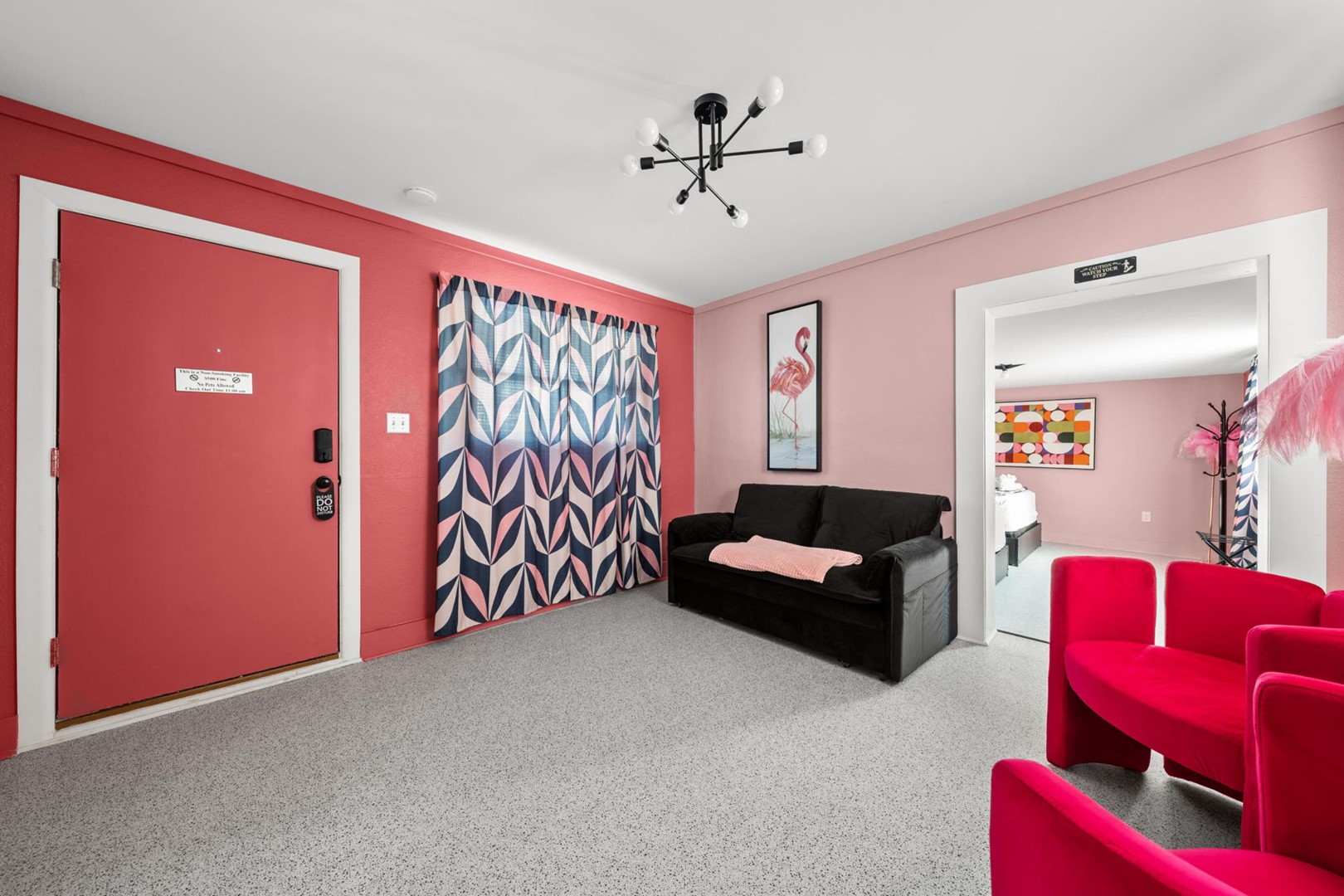 • Miss Pinky La Rue – 2 Queen Beds + Queen Sleeper Sofa (Sleeps 6)