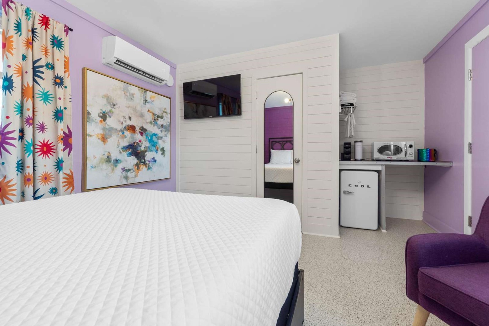 Welcome to Orchid Oasis at The Pink Flamingo, a newly renovated boutique motel room along scenic US Highway 98 in Port St. Joe. This nostalgic roadside gem has been thoughtfully transformed into a stylish, retro-inspired escape along Florida’s beautiful Forgotten Coast.