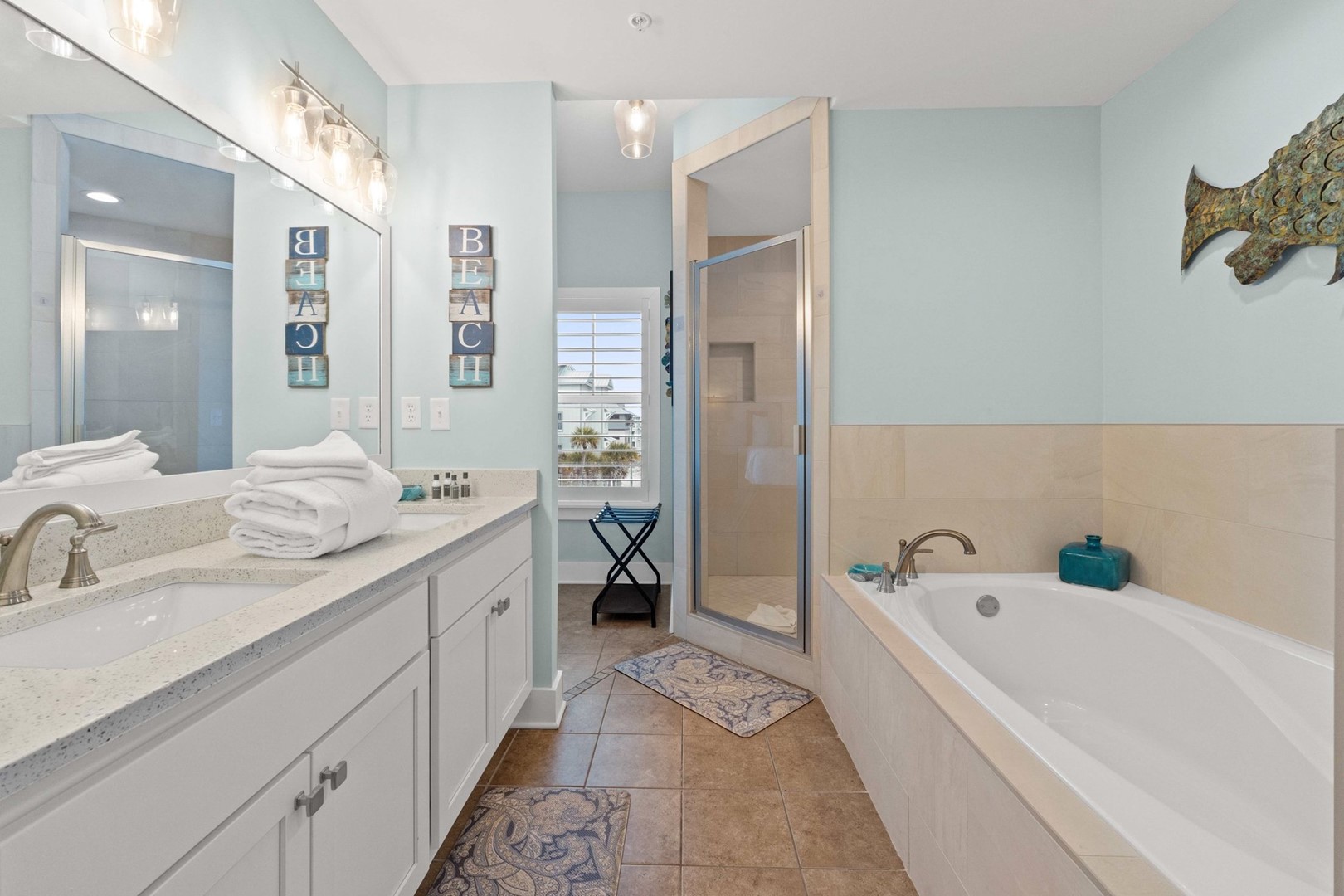 Panhandle Getaways furnishes a few essential items for guests to utilize until they can get to the grocery store. Initial Supplies include: Dishwasher soap, small washing machine powder, each bathroom has amenities (like hotel but NOT restocked) shampoo, conditioner, soap bar. One roll of toilet paper in each bathroom and one paper towel roll in the kitchen. All bed linens and towels are provided. We encourage guests to bring beach towels for use at the pool and beach.
