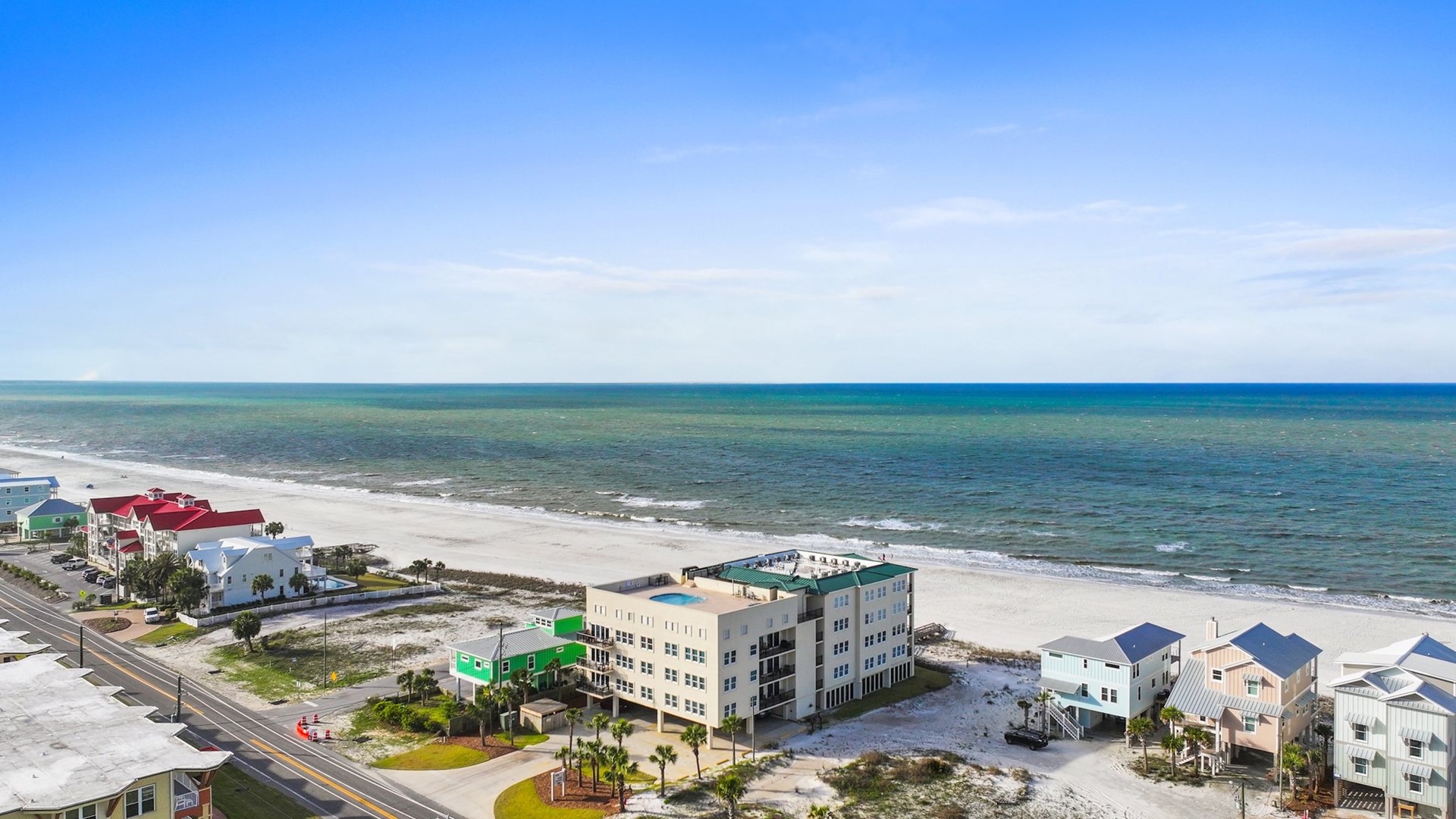 The Vue condo complex is located at the heart of Mexico Beach and is only steps to the beach. After receiving damage from Hurricane Michael in 2018, the entire resort was rebuilt from the pilings up with the interior of all of the units fully remodeled and refurnished by their respective owners.