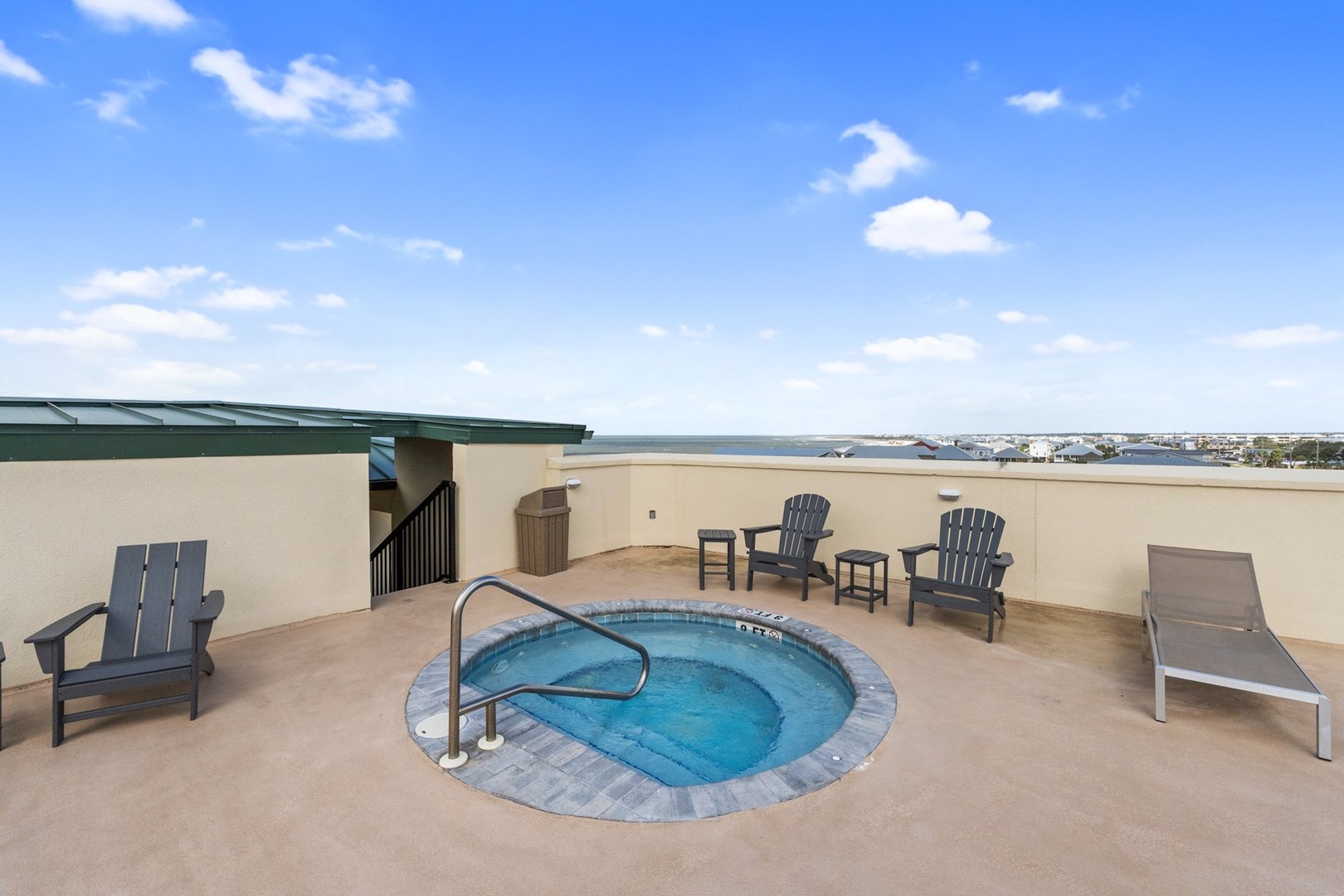 With expansive balconies overlooking the Gulf, each Vue condo is designed to make the most of its surroundings. The rooftop swimming pool and hot tub offer panoramic beach views, making it the perfect spot to unwind and enjoy your stay. The Vue also includes covered parking, an outdoor shower, and a grilling area, making it easy to enjoy outdoor activities without leaving the property. The private entrance to the community boardwalk makes it a breeze to access the beach.
