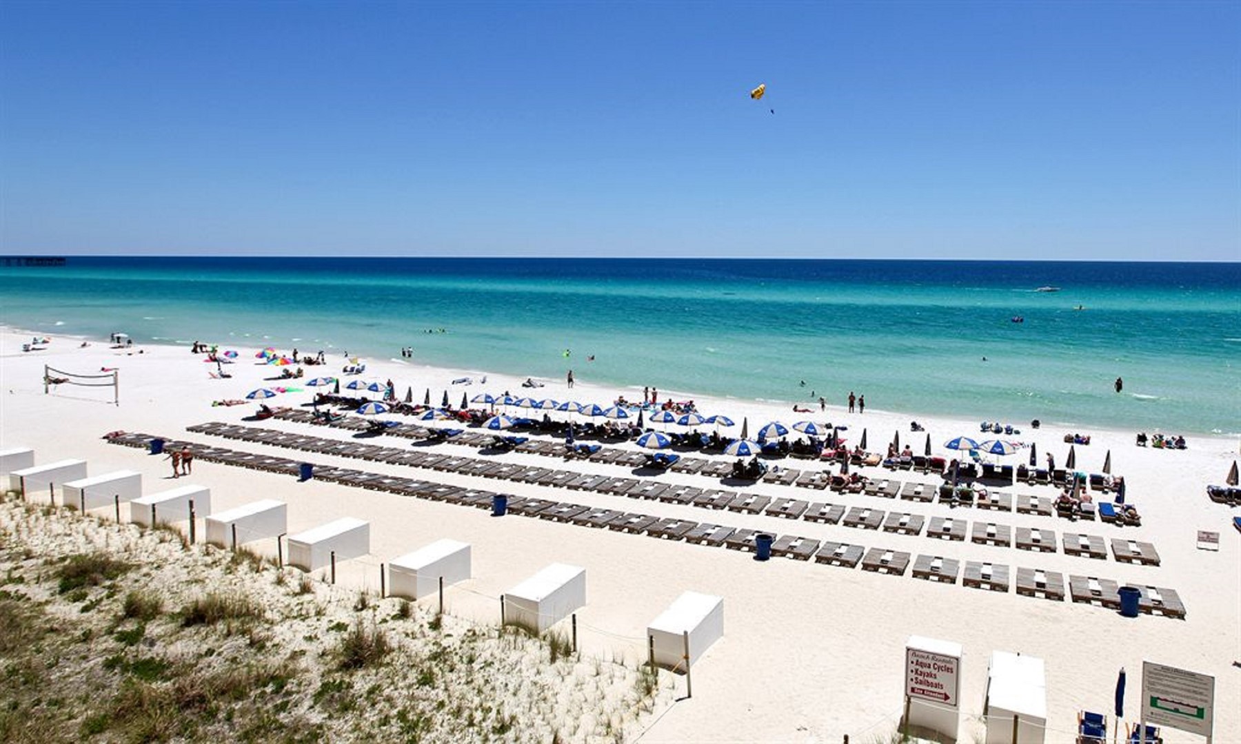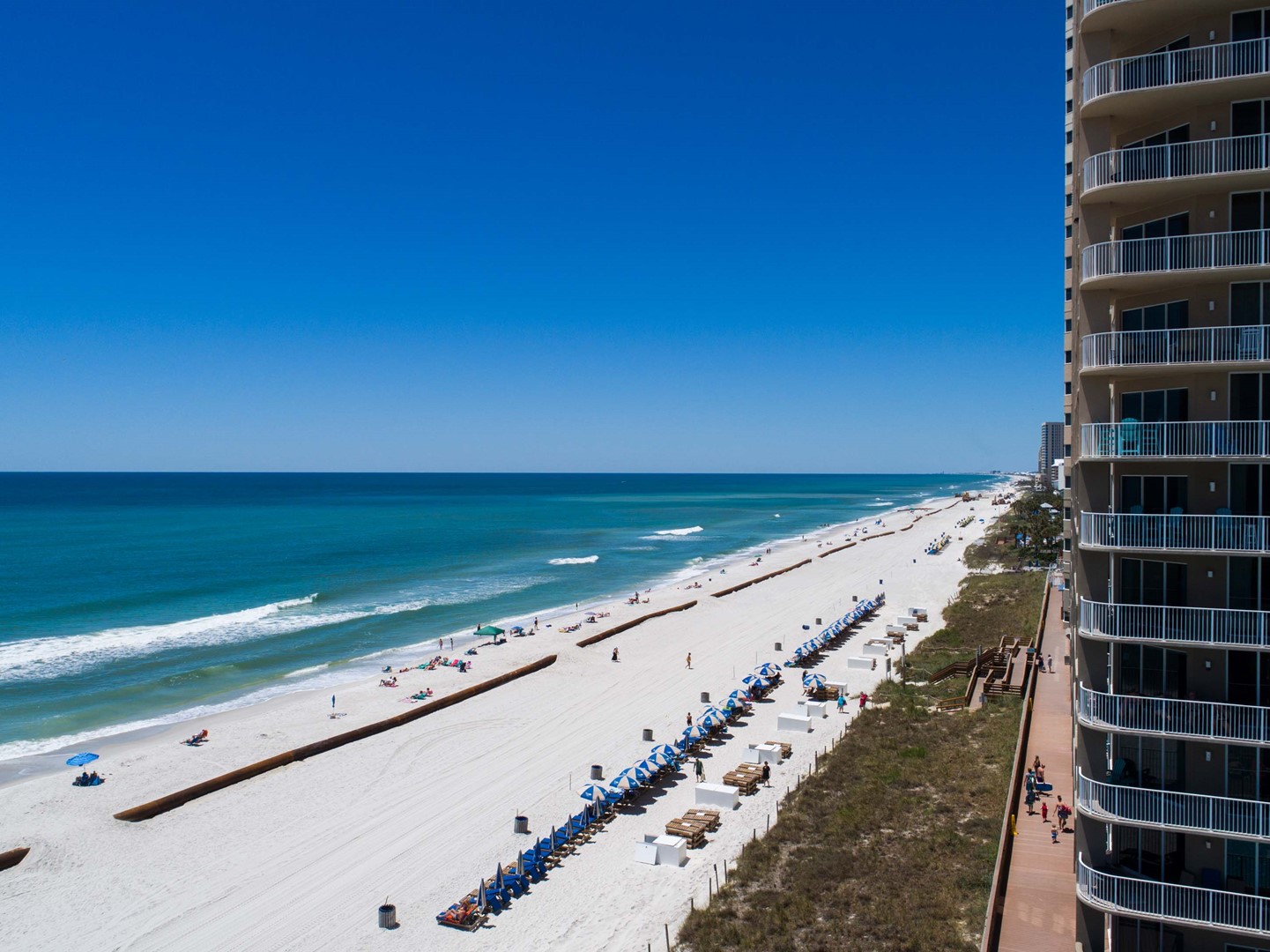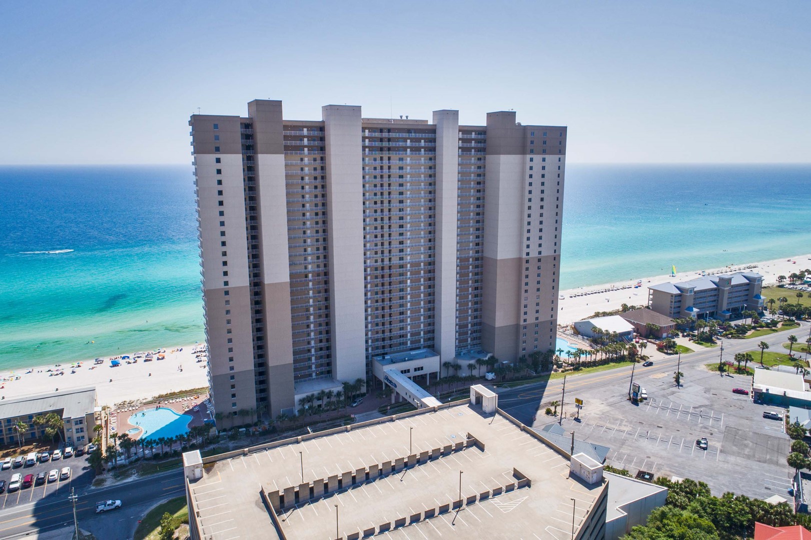 Tidewater Beach Resort has impressive amenities: two 4,200 square foot outdoor lagoon pools with hot tubs, a heated indoor pool, a state-of-the-art fitness center with Roman Spa, steam room and sauna, theater-style movie/media center, arcade/game room, restaurant, coffee shop and tiki bar. Best of all, Tidewater Beach Resort is just a quick walk or bike ride away from City Pier (great for fishing and marine life watching) and Pier Park, the entertainment, shopping and dining hub of West Panama City Beach and beyond!