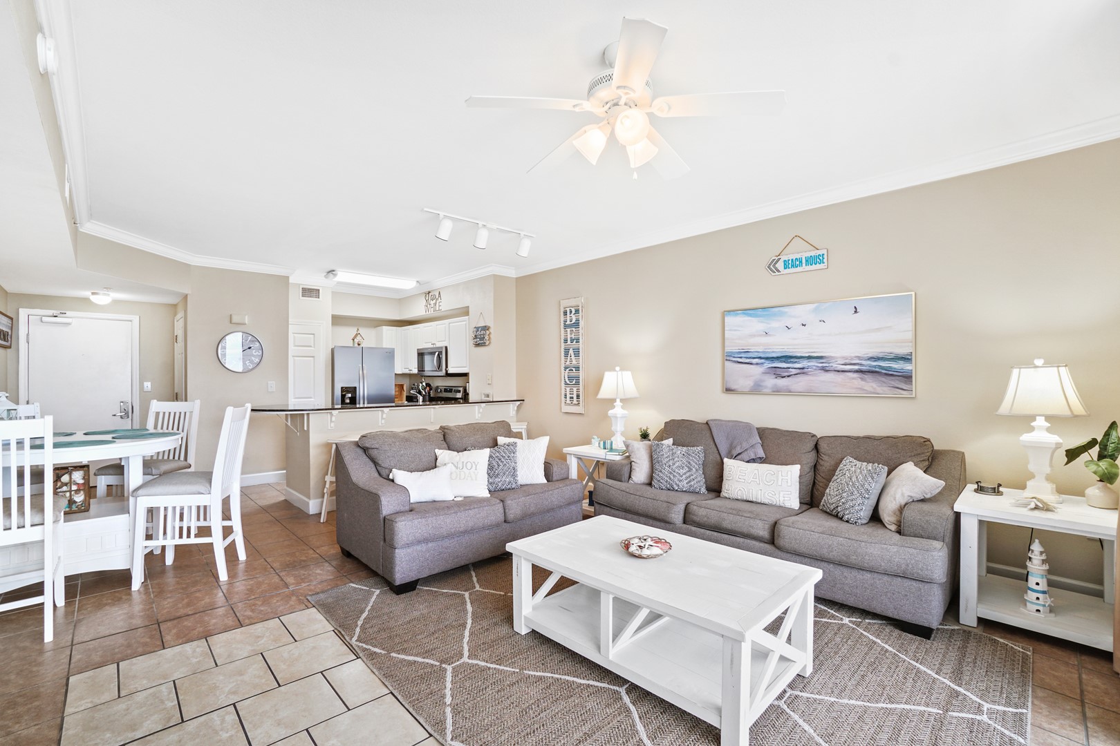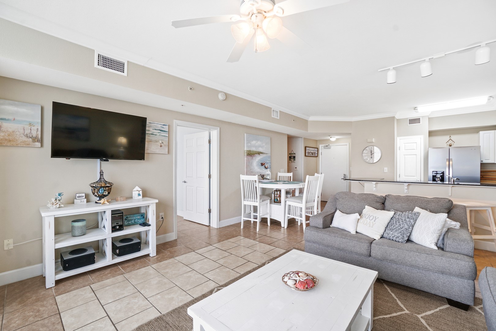 * Living Area - Gulf View, 60" Smart TV, Balcony Access