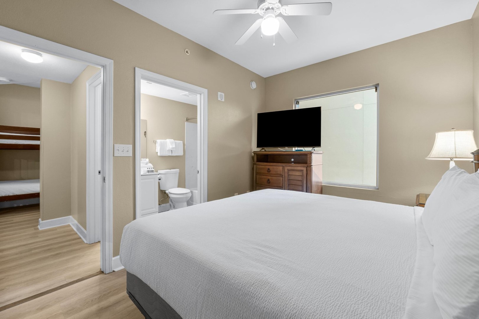 * Bedroom 1 - King Bed, 50" TV, En Suite Bathroom
