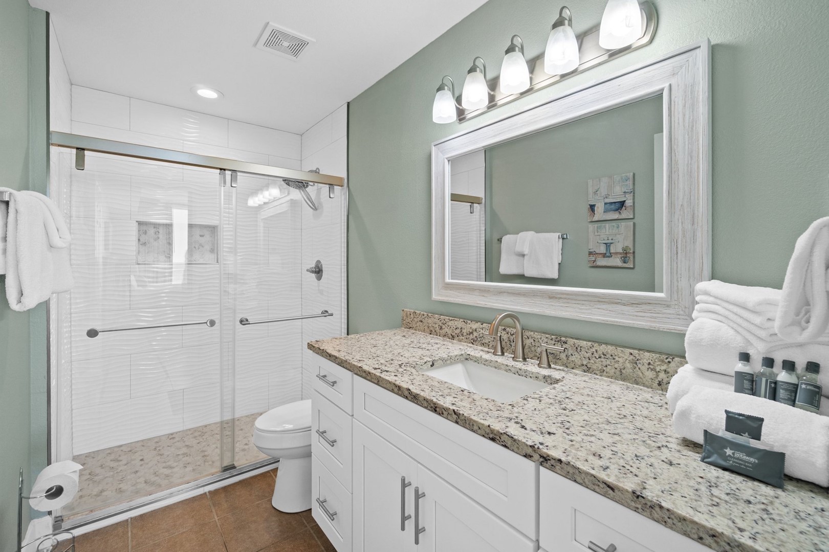 Panhandle Getaways furnishes a few essential items for guests to utilize until they can get to the grocery store. Initial Supplies include: Dishwasher soap, small washing machine powder, each bathroom has amenities (like hotel but NOT restocked) shampoo, conditioner, soap bar. One roll of toilet paper in each bathroom and one paper towel roll in the kitchen. All bed linens and towels are provided. We encourage guests to bring beach towels for use at the pool and beach.