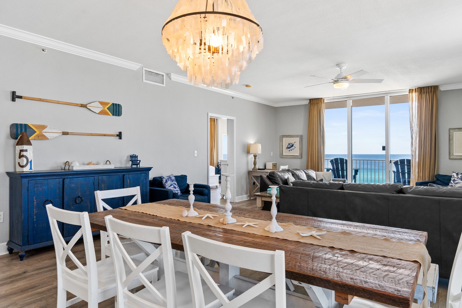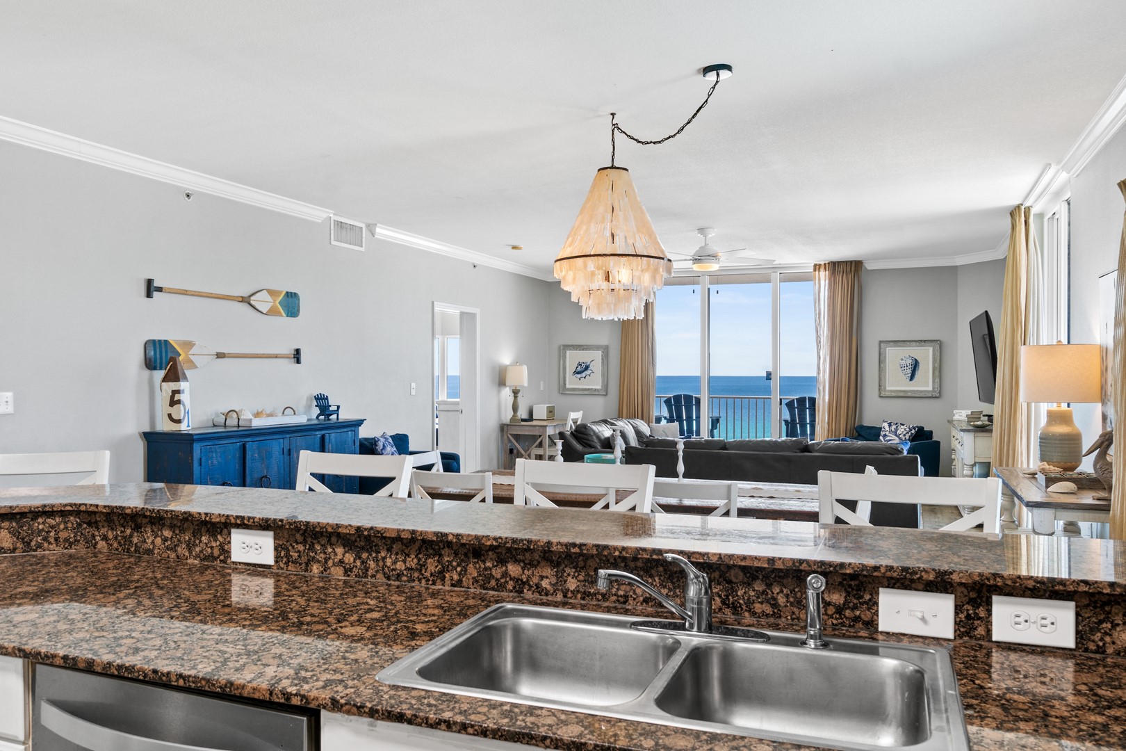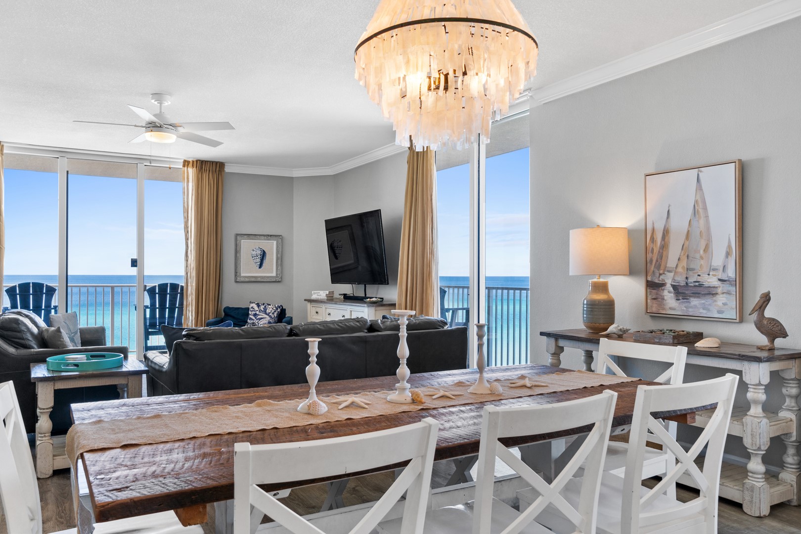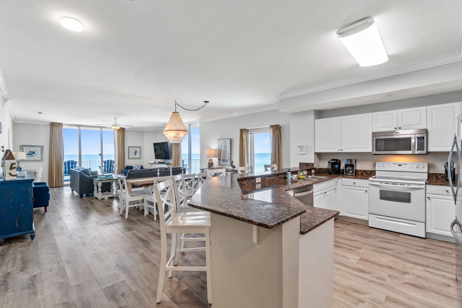 * Living Area - Floor to Ceiling Windows with Gulf View, Large TV