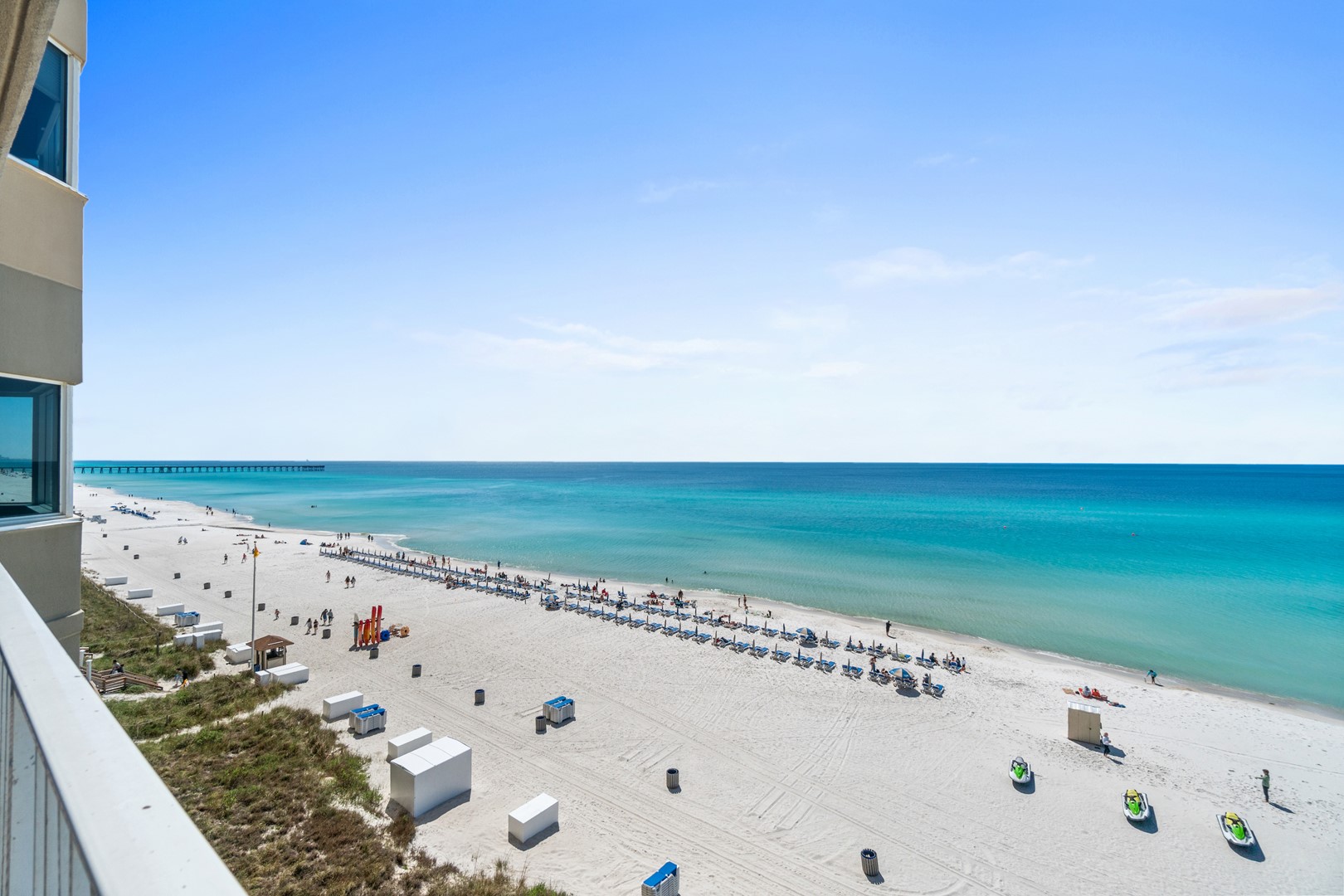 Tidewater Beach Resort has impressive amenities: two 4,200 square foot outdoor lagoon pools with hot tubs, a heated indoor pool, a state-of-the-art fitness center with Roman Spa, steam room and sauna, theater-style movie/media center, arcade/game room, restaurant, coffee shop and tiki bar. Best of all, Tidewater Beach Resort is just a quick walk or bike ride away from City Pier (great for fishing and marine life watching) and Pier Park, the new entertainment, shopping and dining hub of West Panama City Beach and beyond!