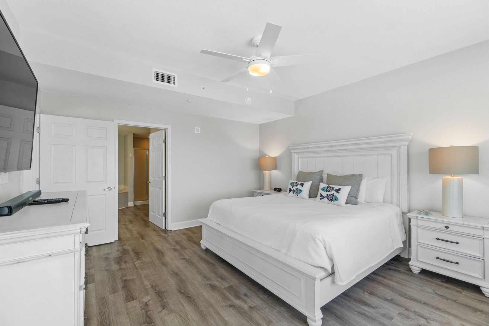 * Bedroom 1 - King Bed, TV, En Suite Bathroom