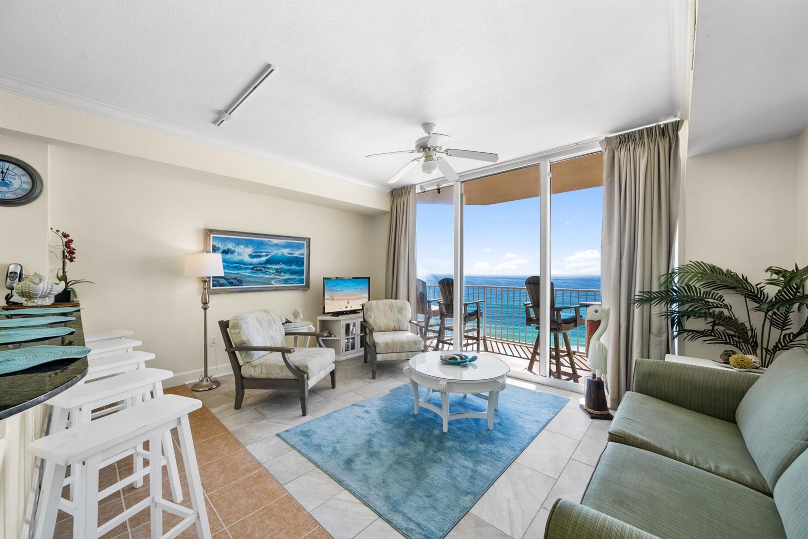 * Living Area - Gulf View, TV, Balcony Access