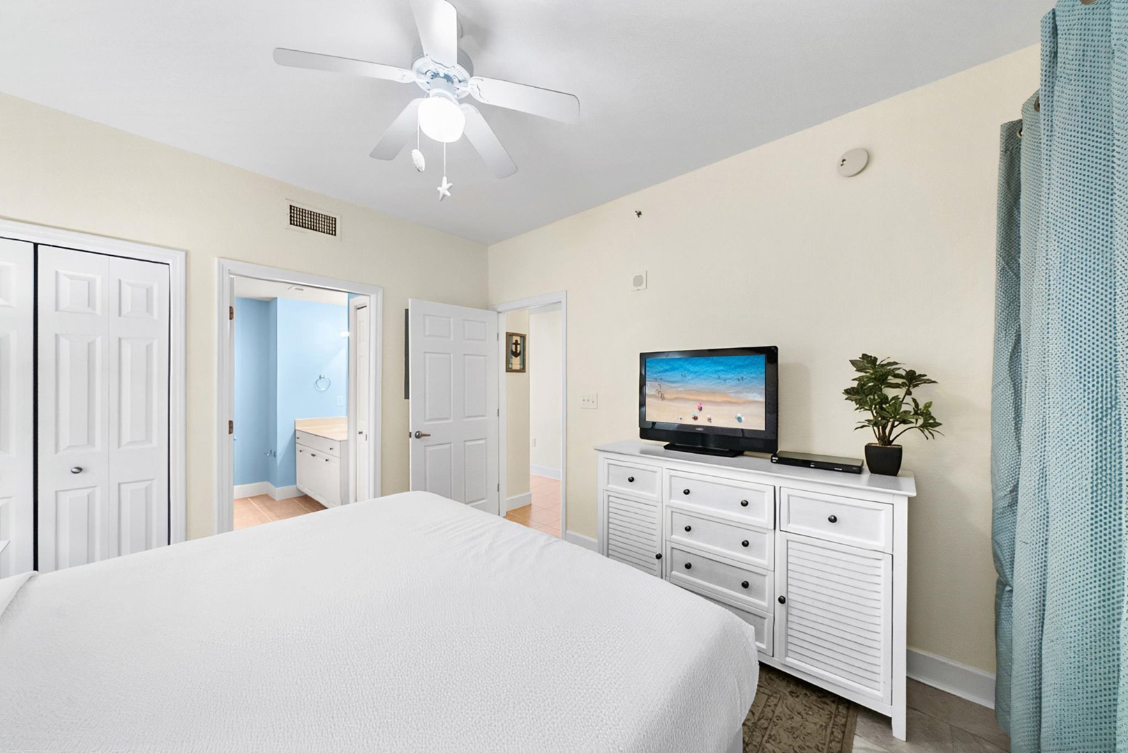* Bedroom 1 - King Bed, 45" TV with DVD Player, En Suite Bathroom