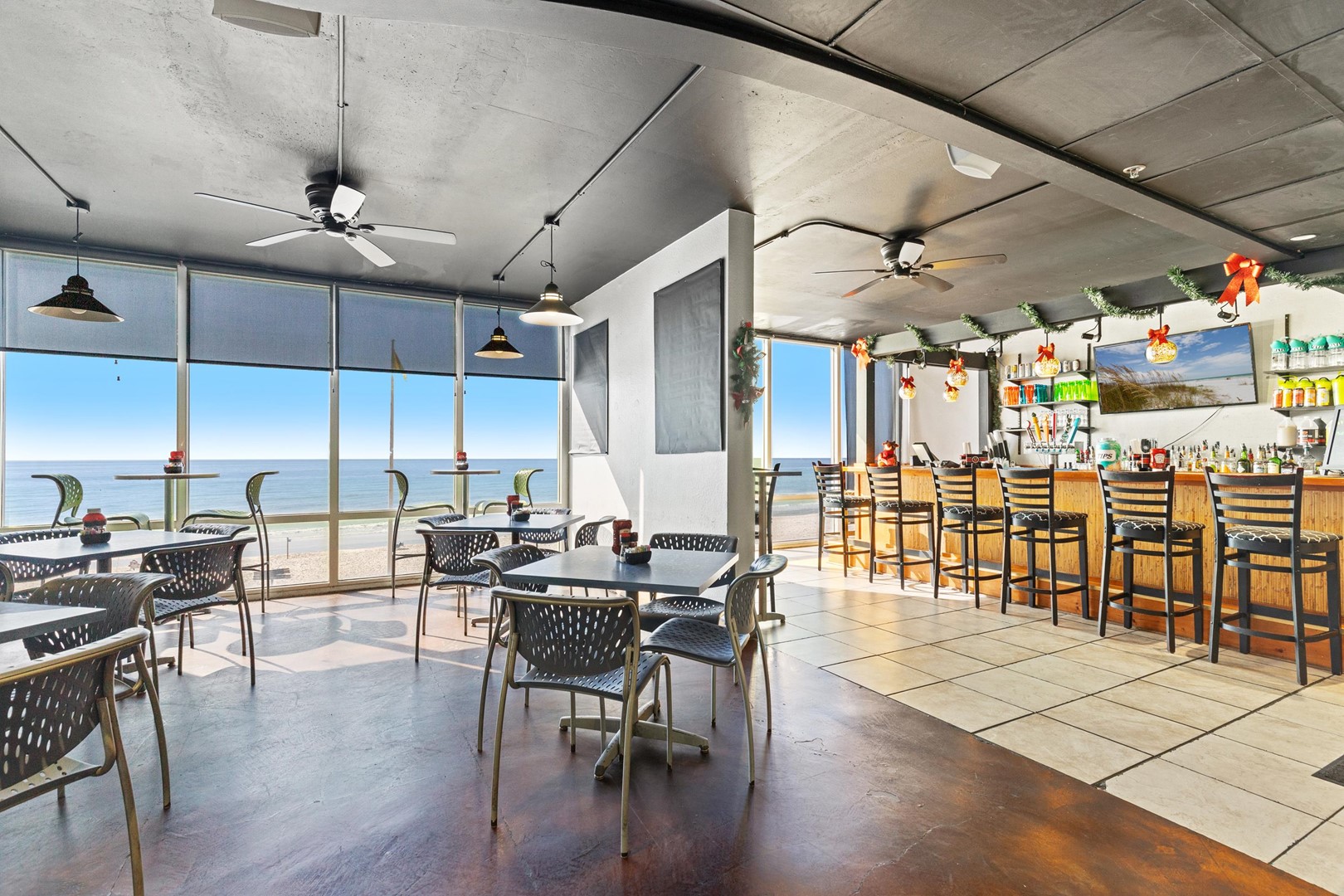 Tidewater Beach Resort has impressive amenities: two 4,200 square foot outdoor lagoon pools with hot tubs, a heated indoor pool, a 4,300 square foot state-of-the-art fitness center with Roman Spa, steam room and sauna, a theater-style movie/media center, a game arcade, restaurant, coffee shop and tiki bar. Best of all, the building is only a short walk or bike ride away from City Pier (great for fishing and marine life watching) and Pier Park.
