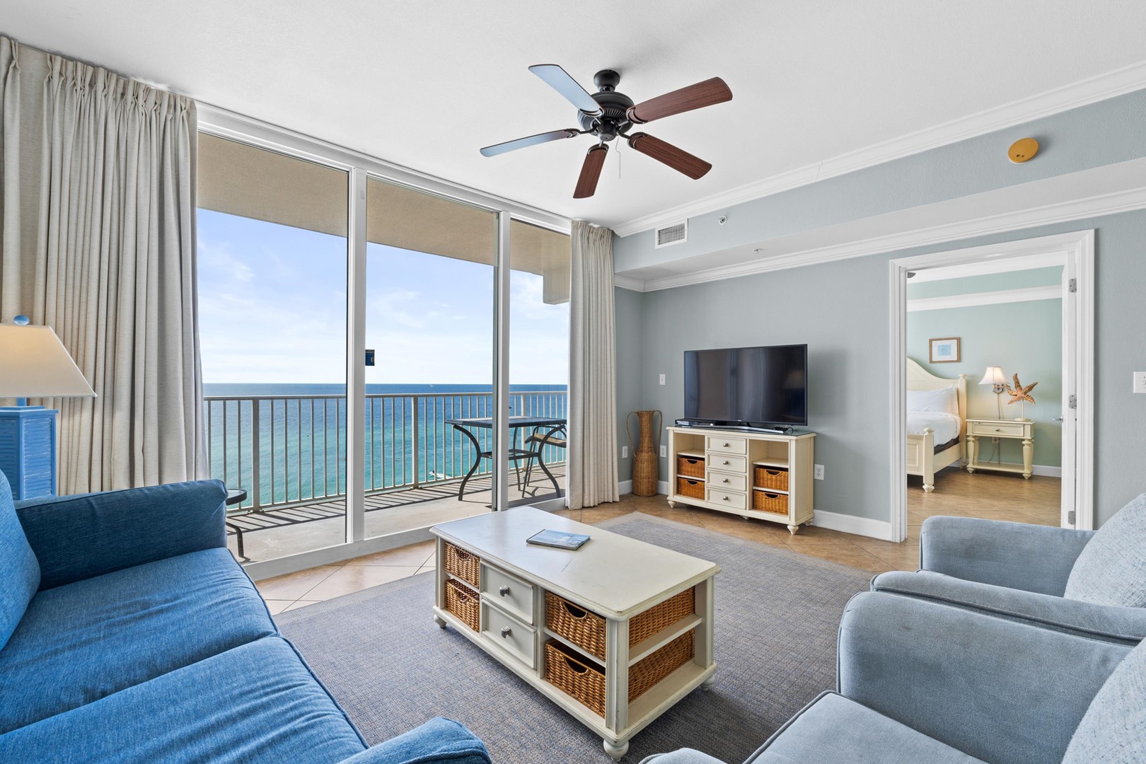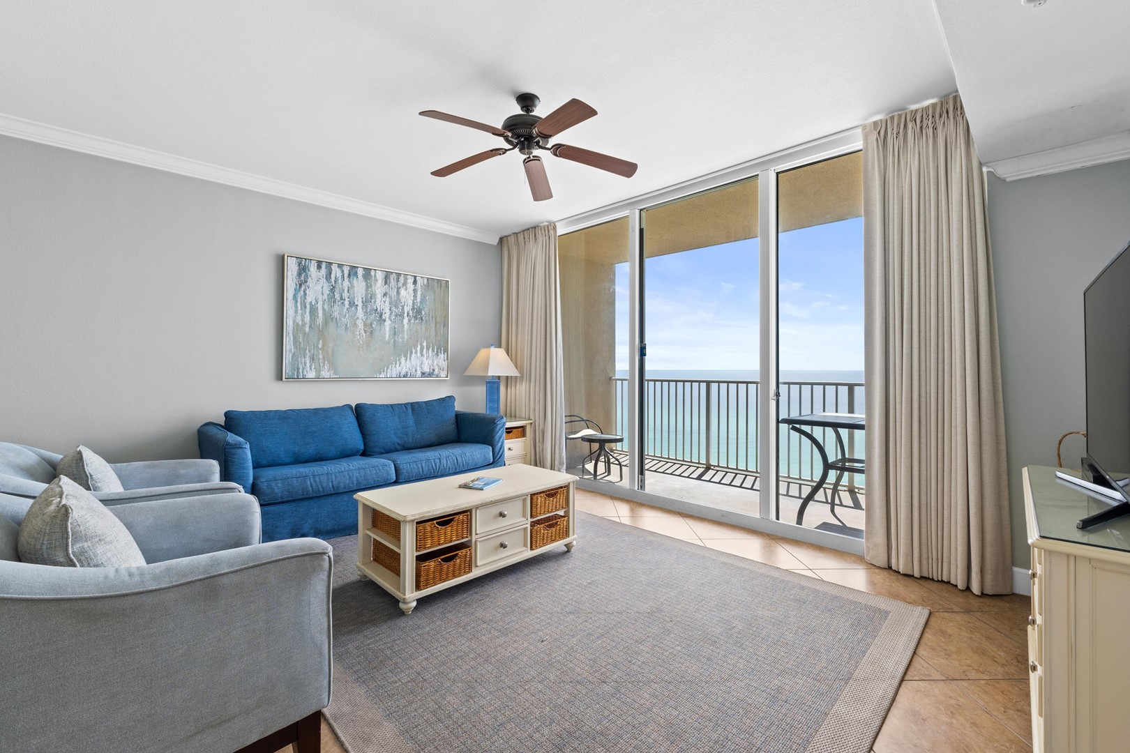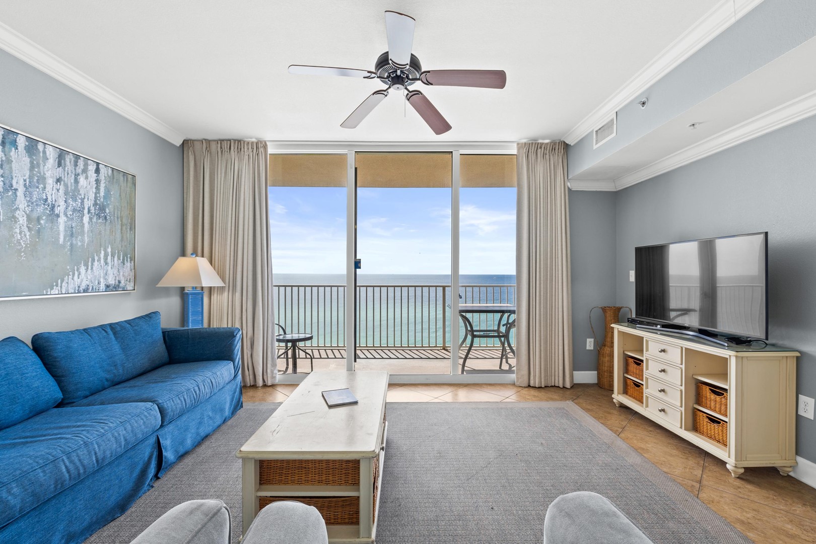 * Living Area - Gulf View, 50" TV, Balcony Access