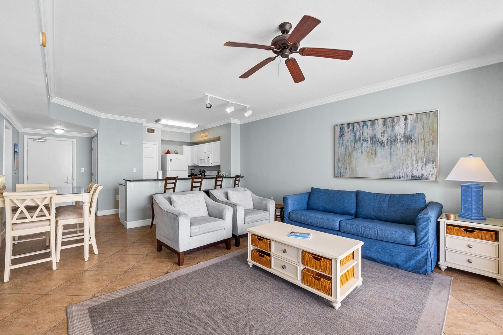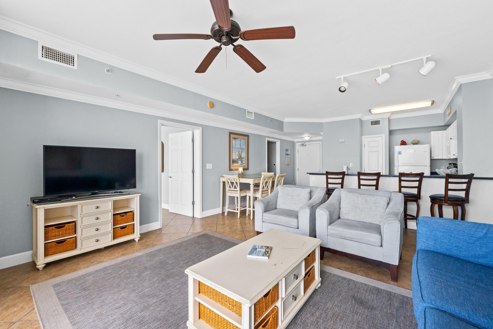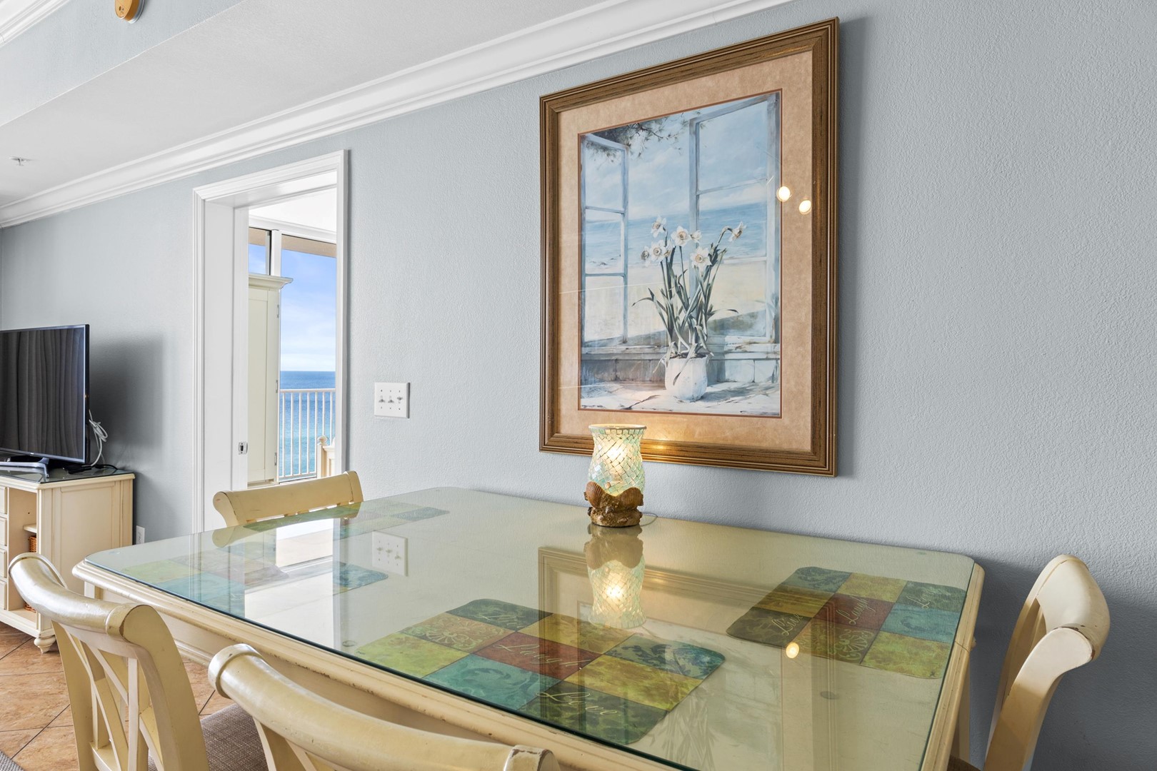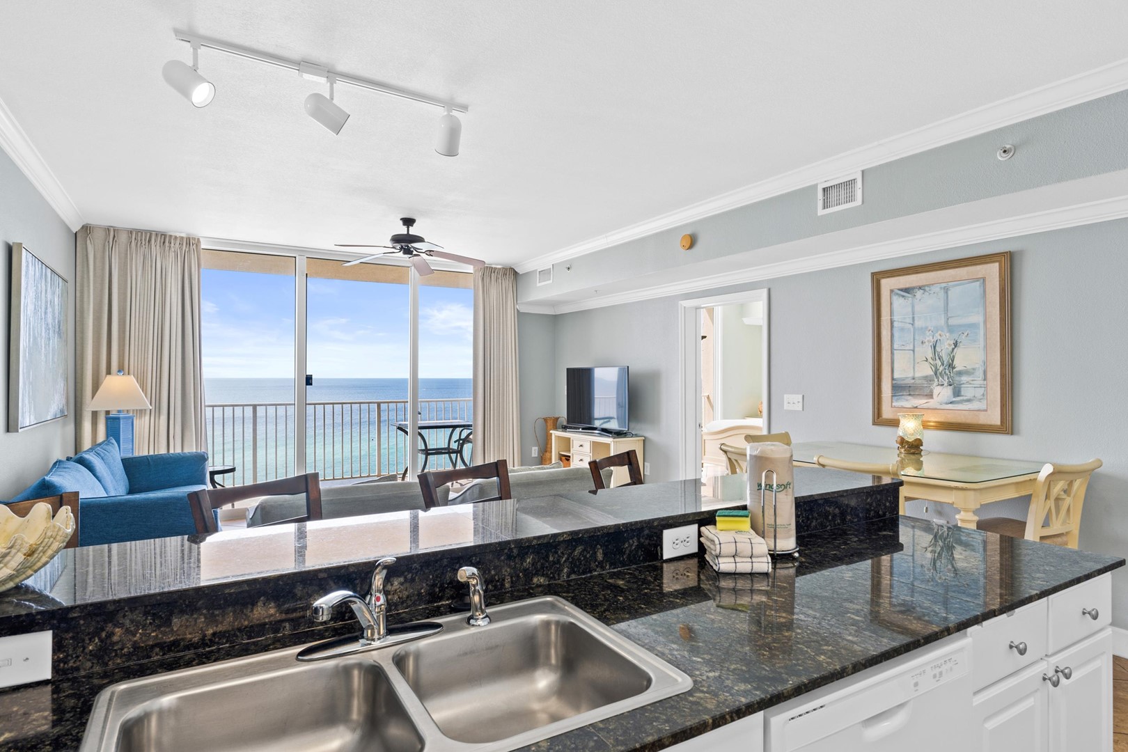 * Living Area - Gulf View, 50" TV, Balcony Access