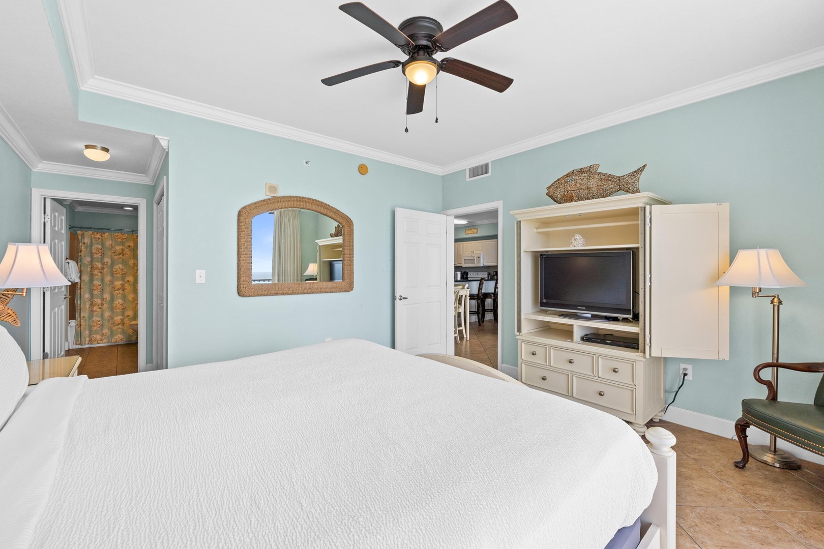 * Bedroom 1 - Gulf View, King Bed, 32" TV, En Suite Bathroom